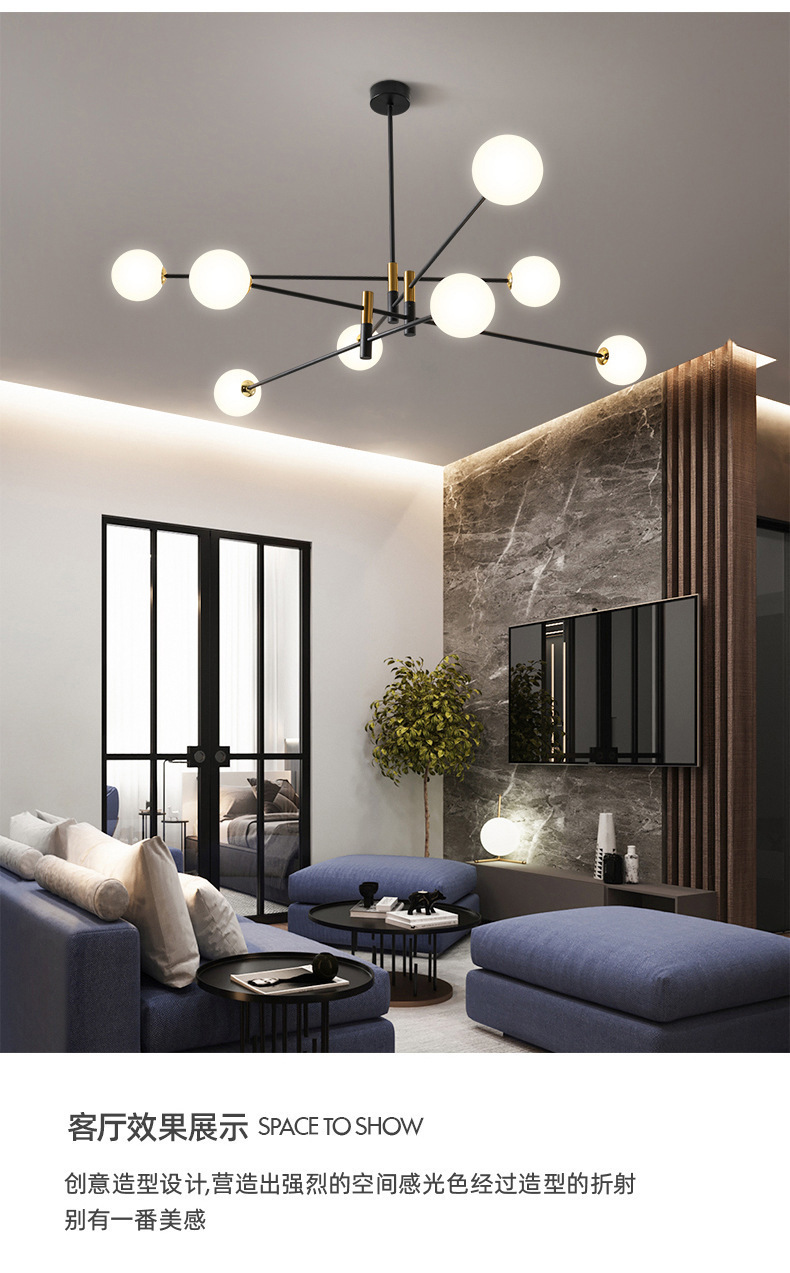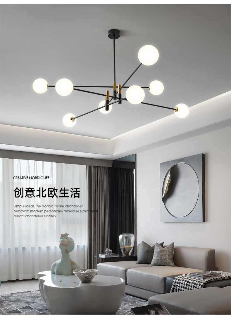 북유럽 미니멀리스트 샹들리에 빛 고급 거실 눈 보호 램프 현대 미니멀 한 대기 창조적 인 분기 침실 램프 매직 콩 샹들리에스토어 가기