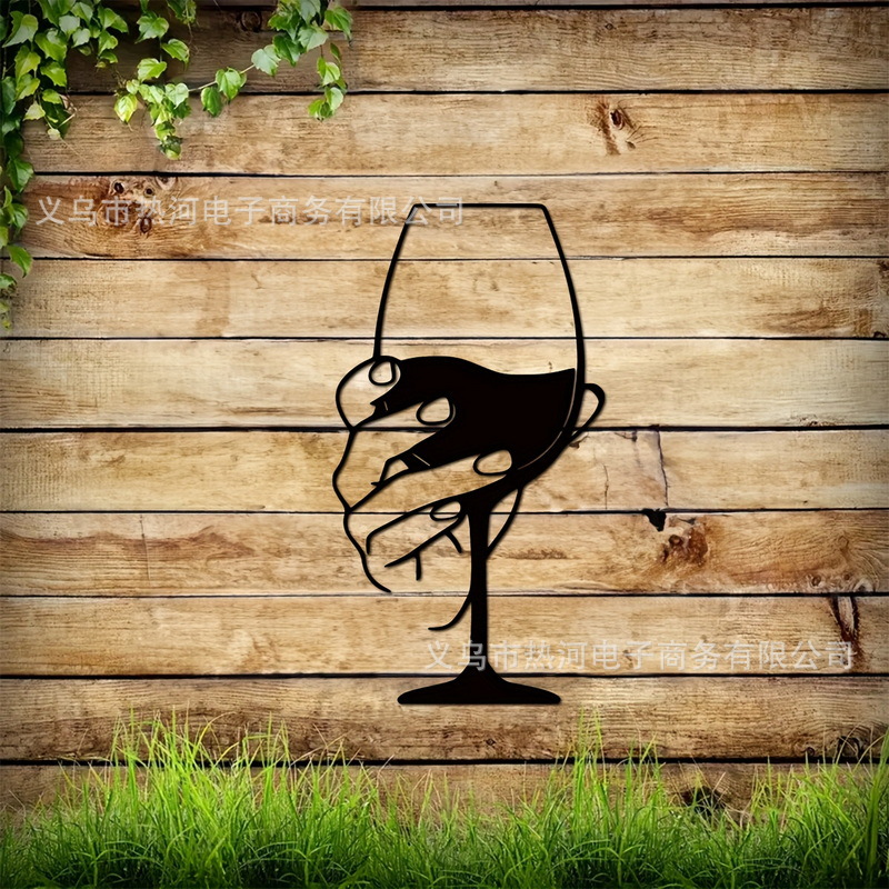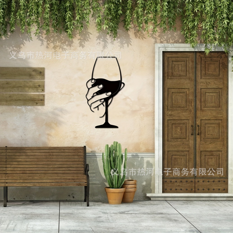 핸드 헬드 와인 유리 금속 벽 아트 현대 미니멀리스트 공예 거실 침실 벽 걸이 장식품