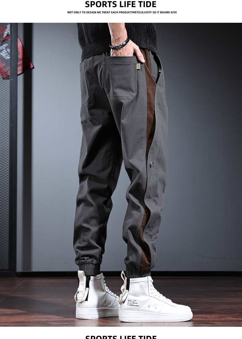 가을과 겨울 대형 다리 명암 남성용 캐주얼 바지 유행 브랜드 캐주얼 느슨한 미국 스타일 하이 엔드 그레이 작업 바지
