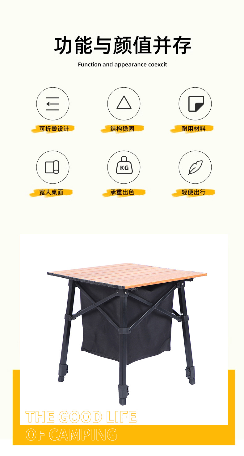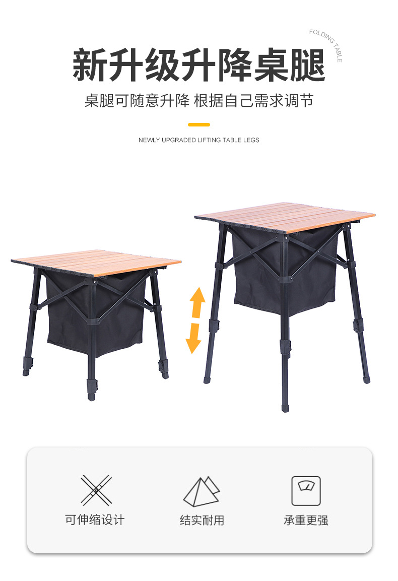 조절 가능한 캠핑 접이식 테이블 캠핑 야외 알루미늄 합금 계란 롤 테이블 바베큐 테이블 및 의자 휴대용 테이블 절연 가방