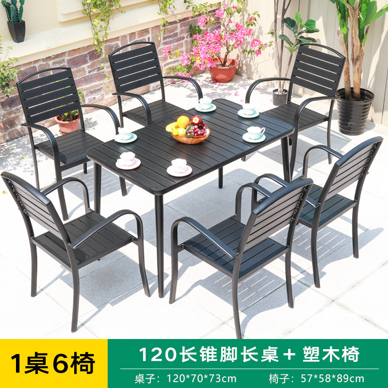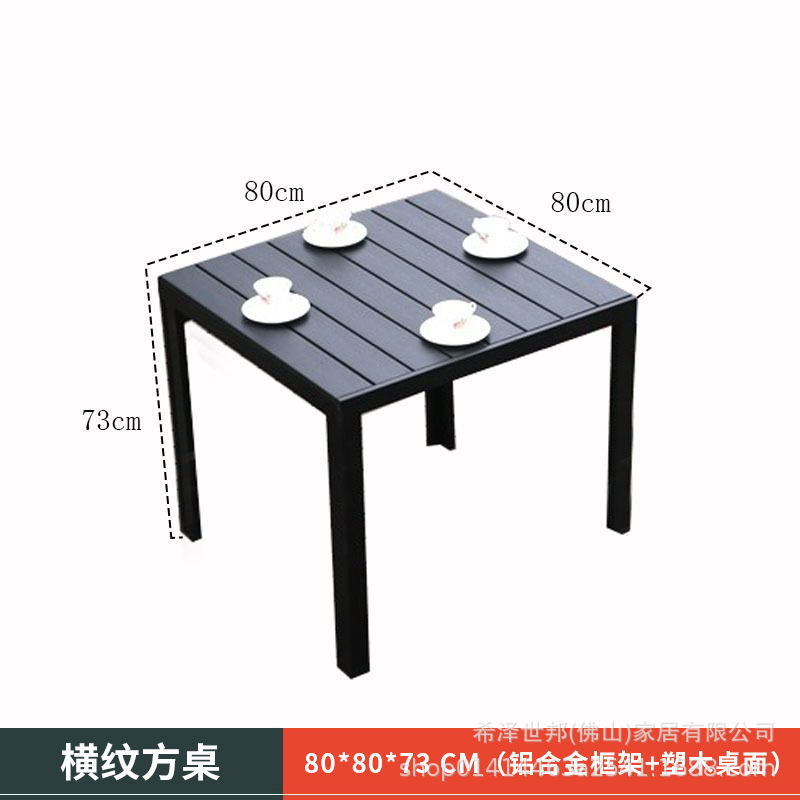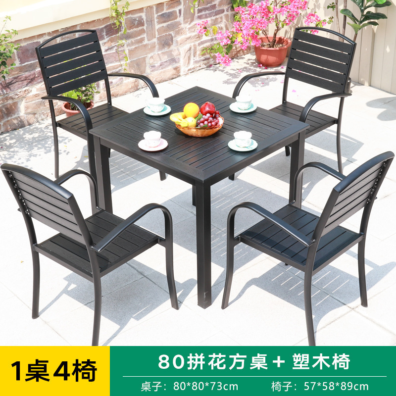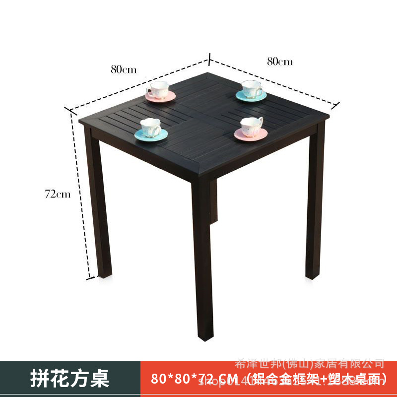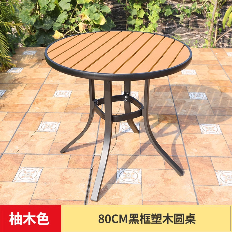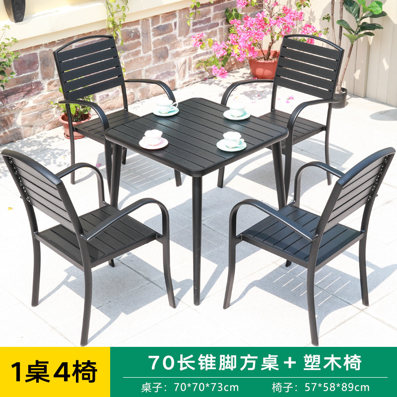 야외 나무 같은 테이블과 의자 알루미늄 합금 우유 차 가게 라운드 테이블 현대 미니멀 한 커피 룸 블랙 프레임 직사각형 테이블과 의자 조합스토어 가기
