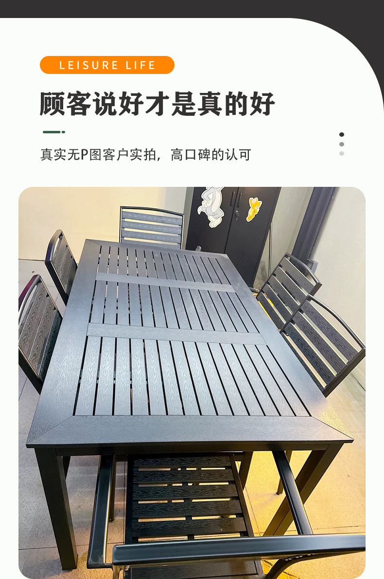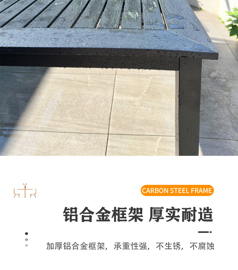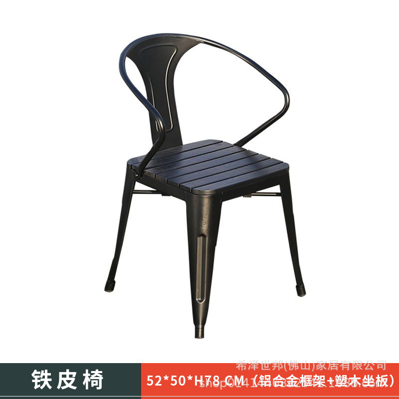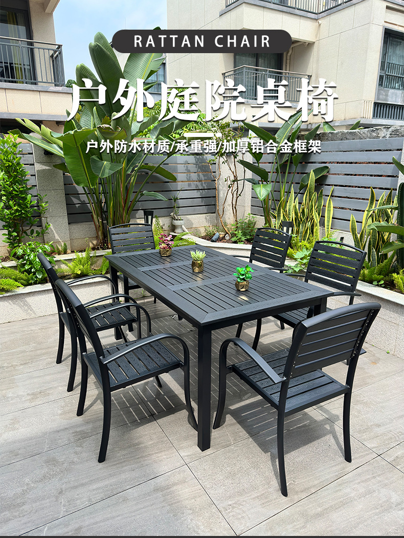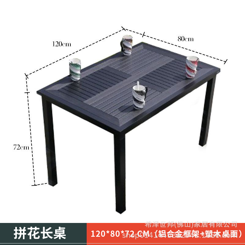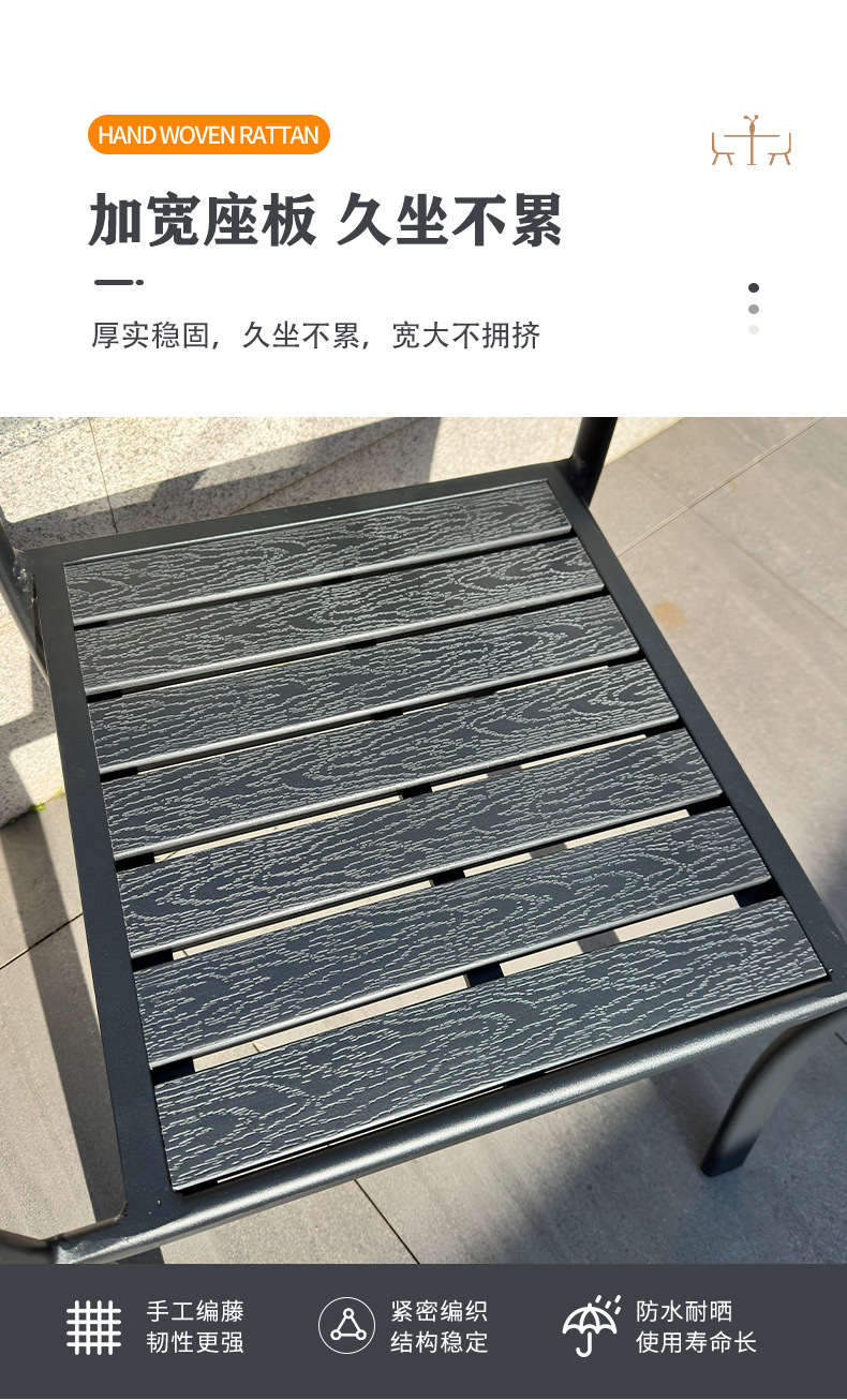 야외 나무 같은 테이블과 의자 알루미늄 합금 우유 차 가게 라운드 테이블 현대 미니멀 한 커피 룸 블랙 프레임 직사각형 테이블과 의자 조합스토어 가기