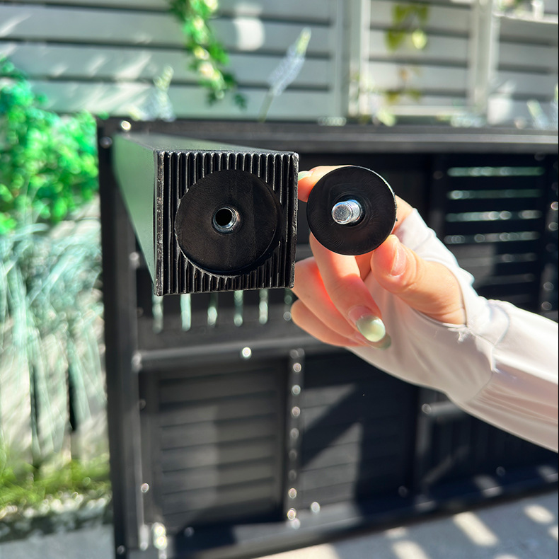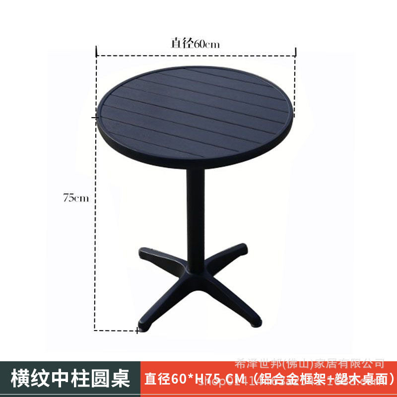 • 80CM 가로 줄무늬 벅 플라스틱 나무 원형 테이블 [블랙 프레임 + 블랙]