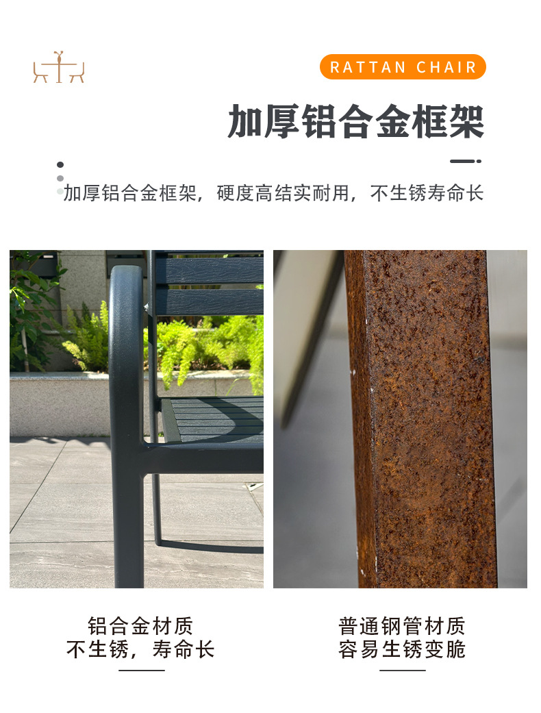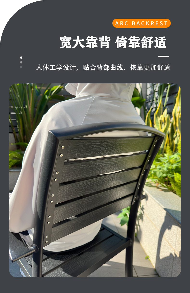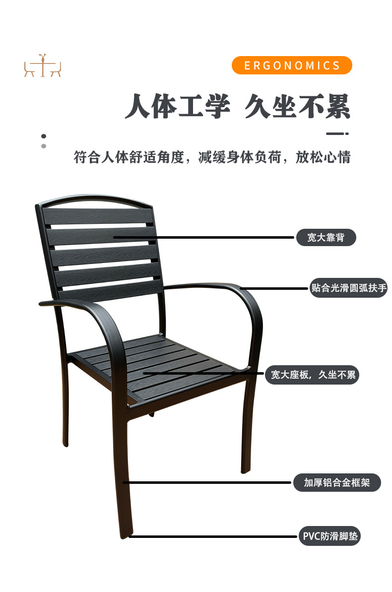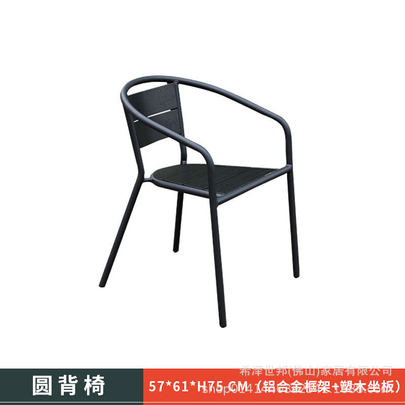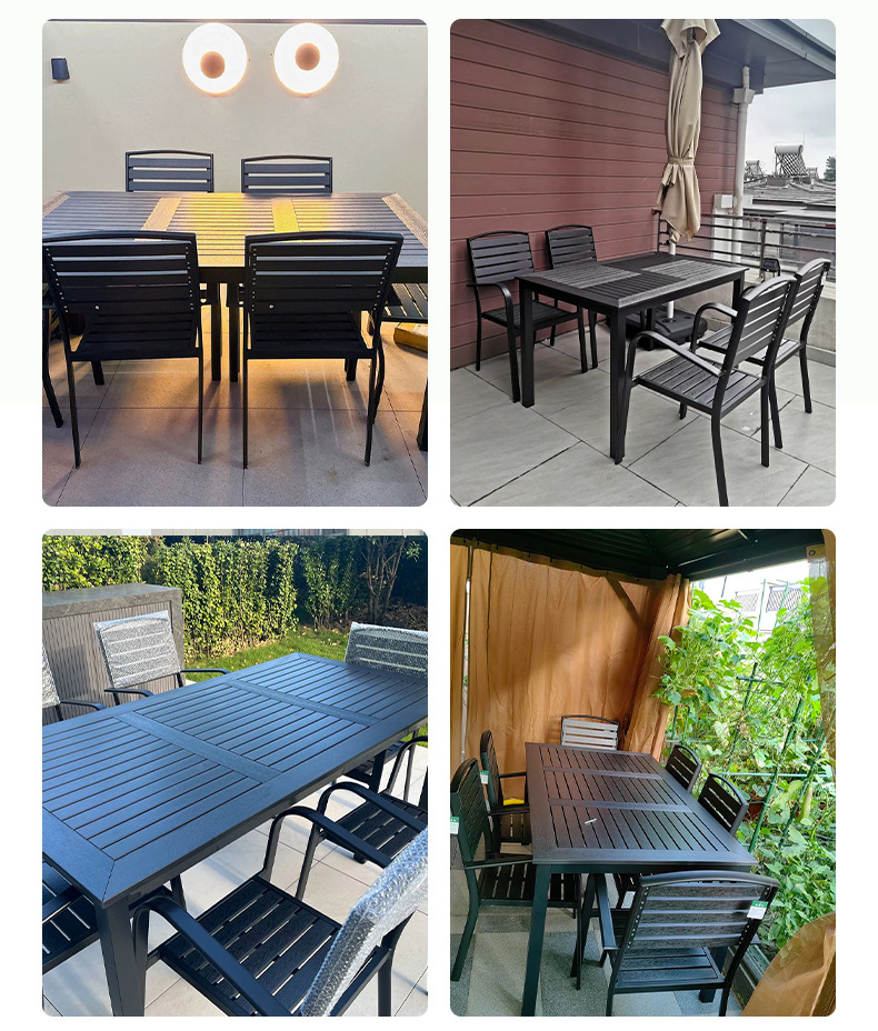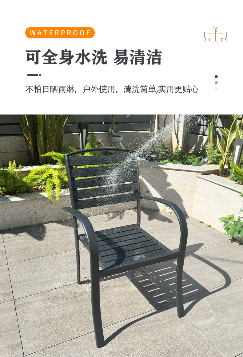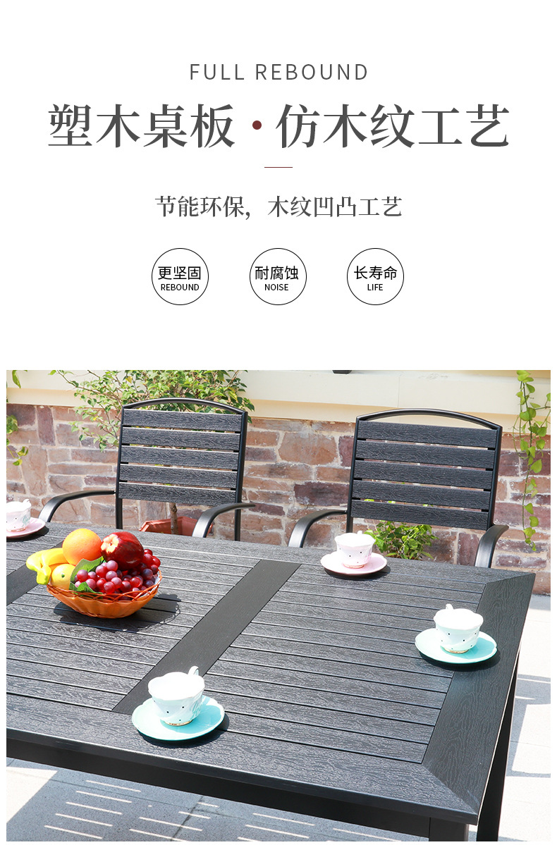 야외 나무 같은 테이블과 의자 알루미늄 합금 우유 차 가게 라운드 테이블 현대 미니멀 한 커피 룸 블랙 프레임 직사각형 테이블과 의자 조합