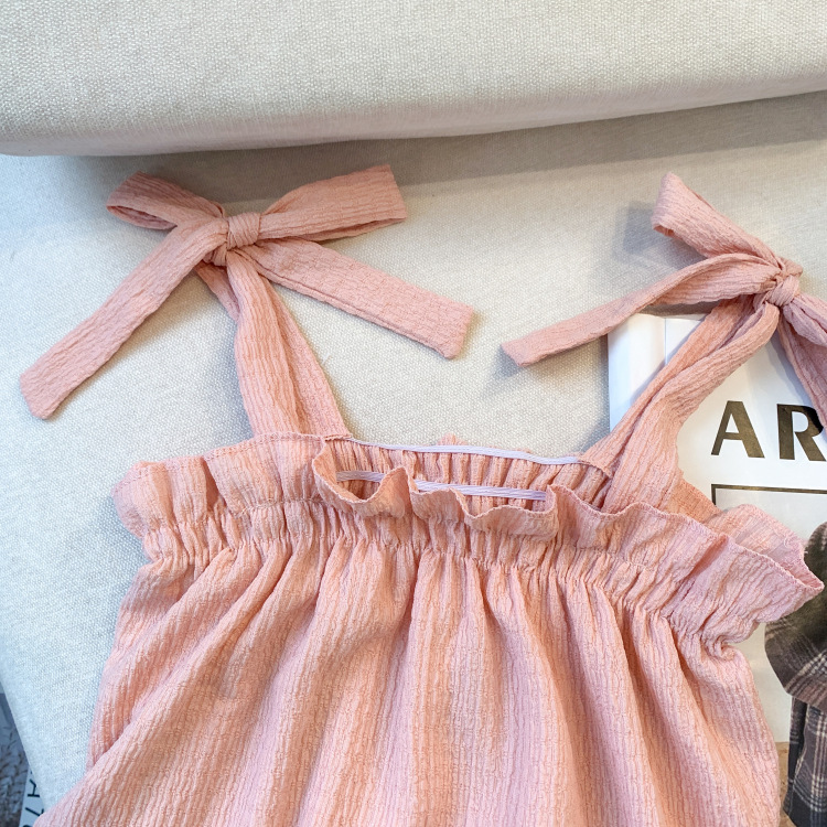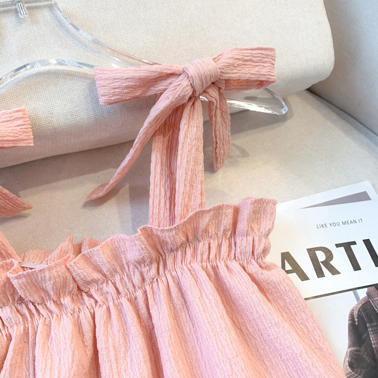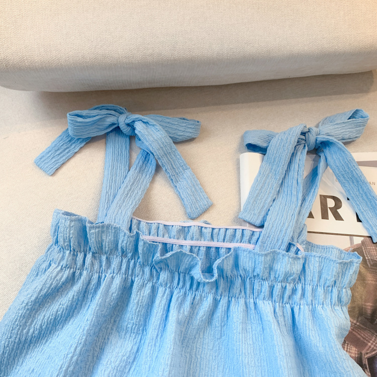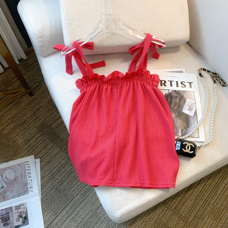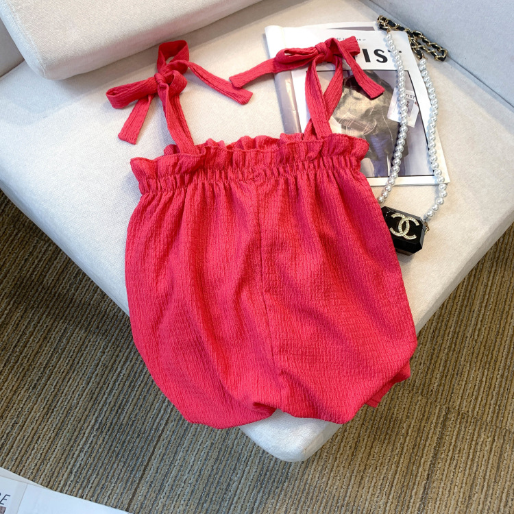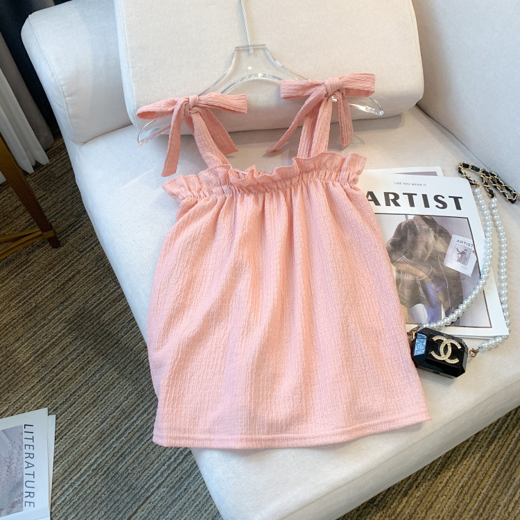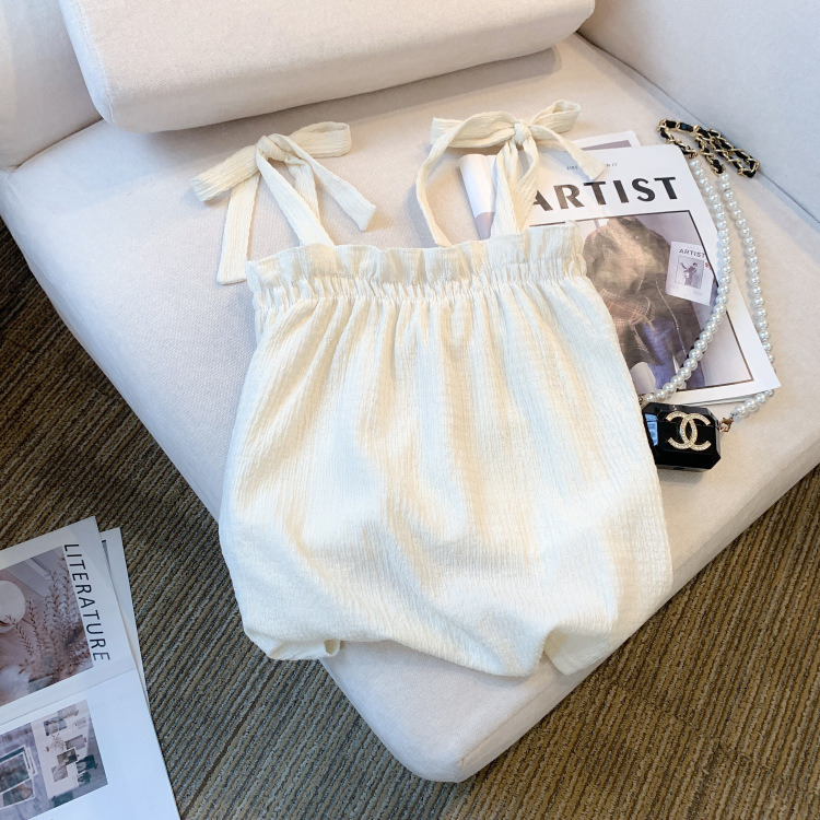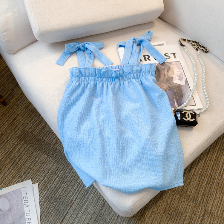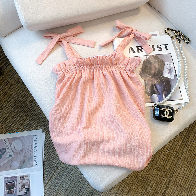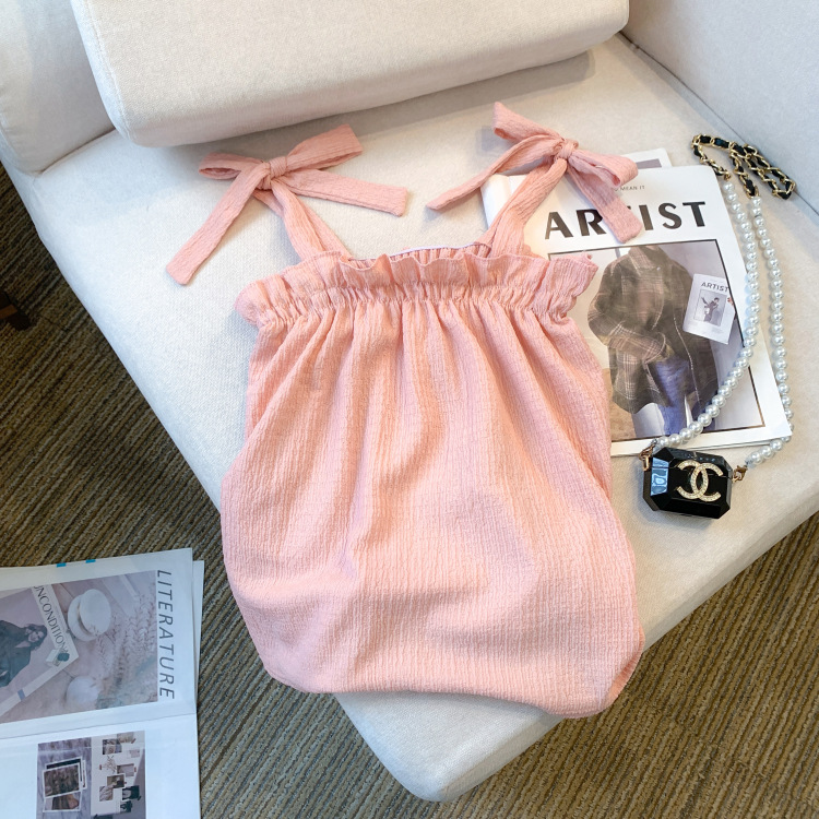 실제 촬영 재고 여름 새로운 디자인 쉬폰 셔츠 달콤한 탑 인형 셔츠 레이스 업 슬링