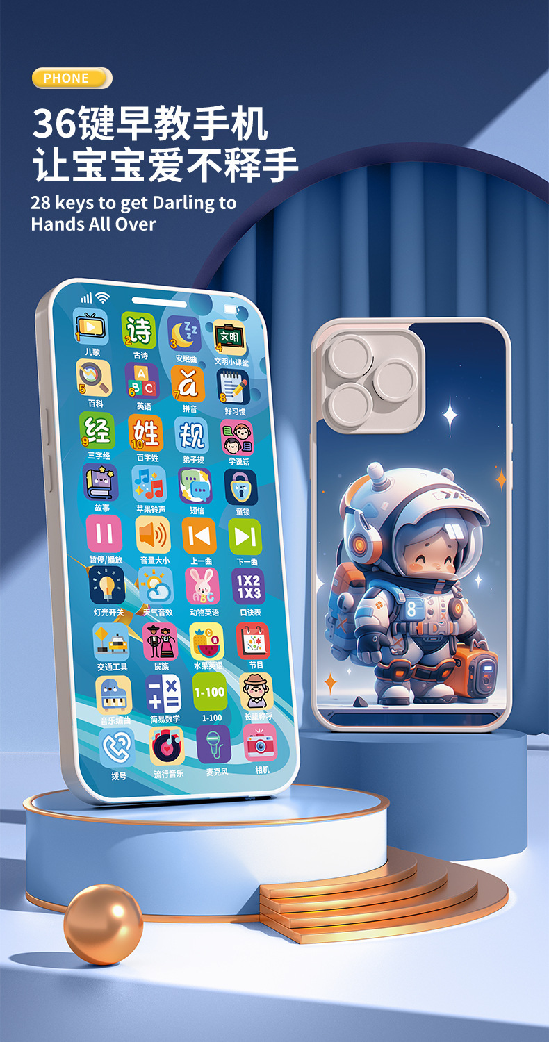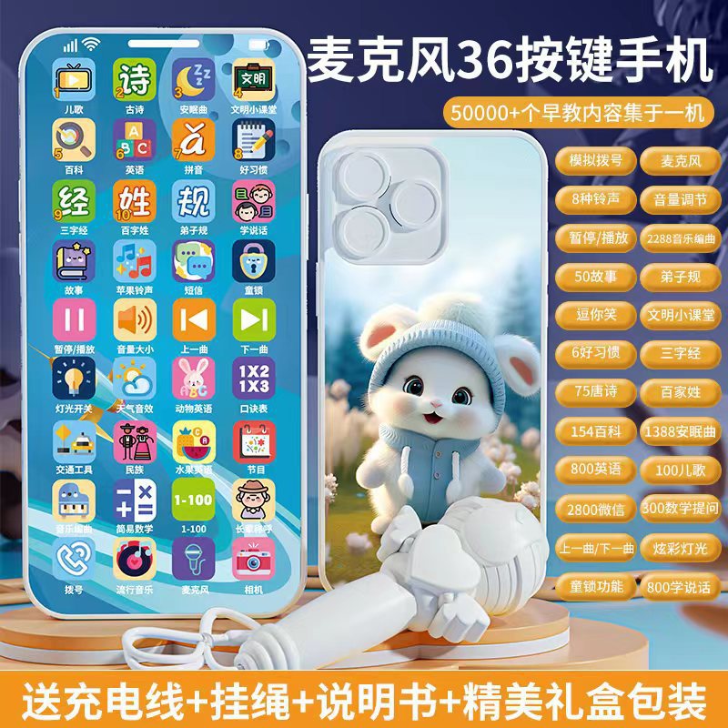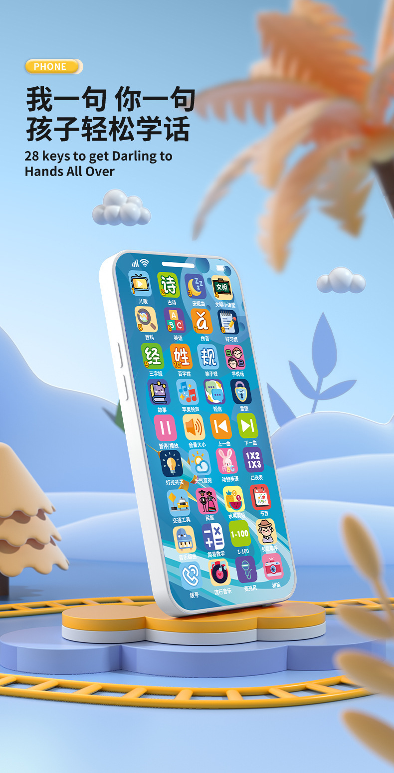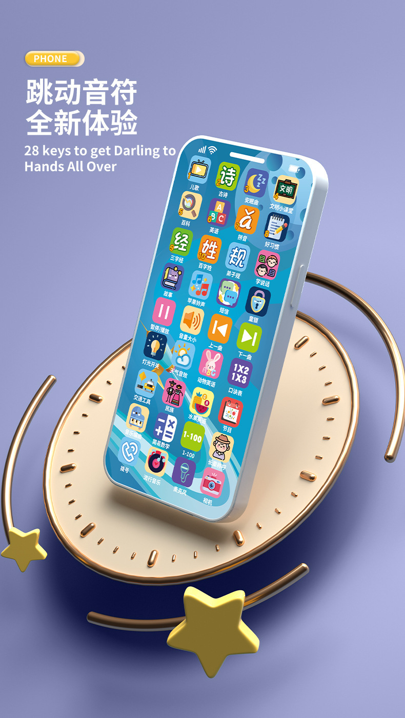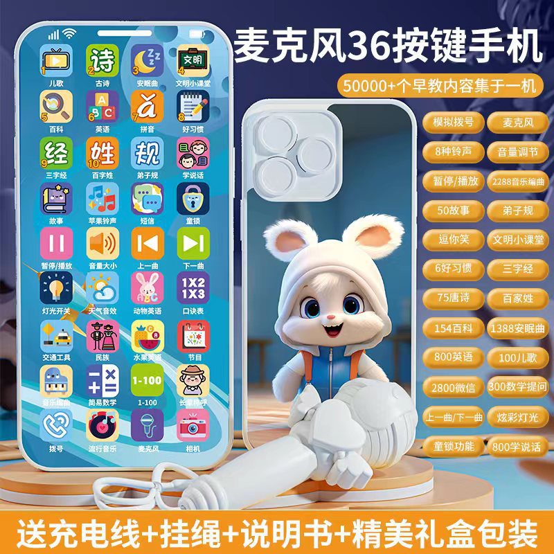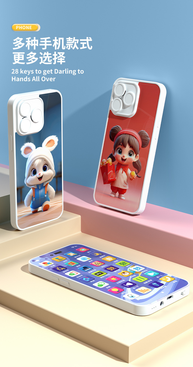 새로운 계몽주의 어린이 조기 교육 다기능 학습 기계 빛 음악 시뮬레이션 터치 스크린 교육 만화 휴대 전화 장난감스토어 가기