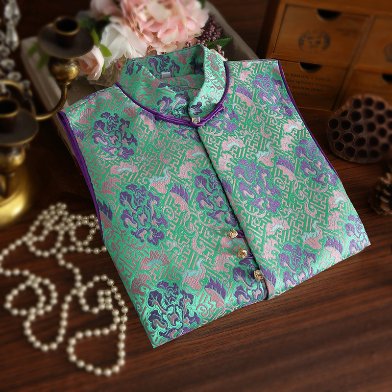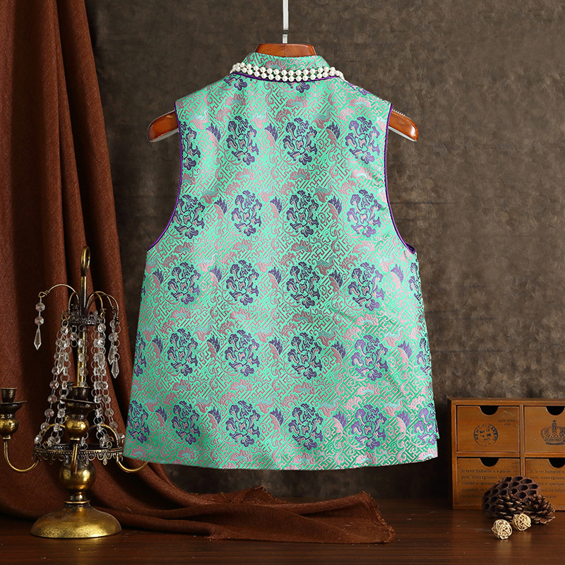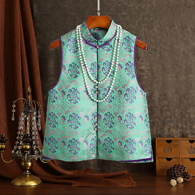 여성을 위한 세련된 연령 감소 패션 내셔널 조끼 2025 가을 겨울 새로운 내셔널 트렌드 브로케이드 자카드 스탠드 칼라 조끼 여성용 조끼스토어 가기