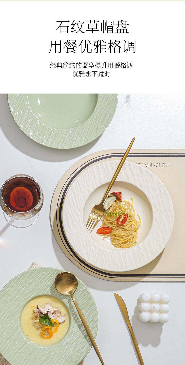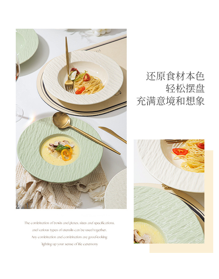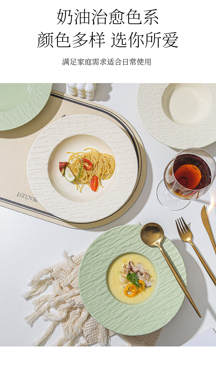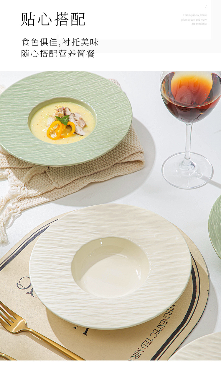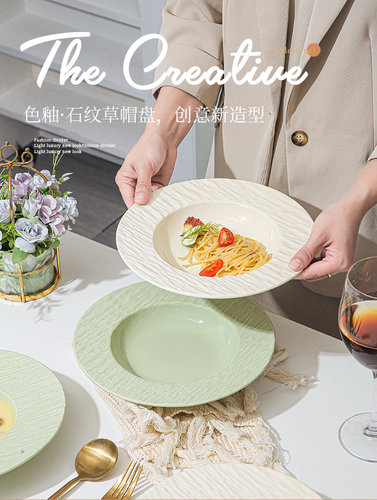 간단한 크림 스타일 세라믹 웨스턴 플레이트 호텔 가정용 파스타 플레이트 밀짚 모자 플레이트 스프 플레이트 디너 플레이트 샐러드 플레이트스토어 가기