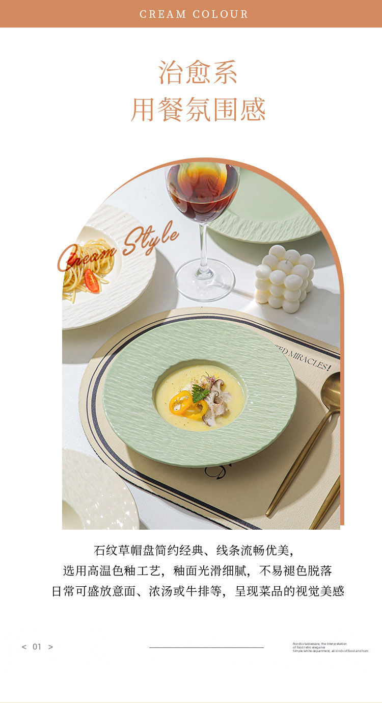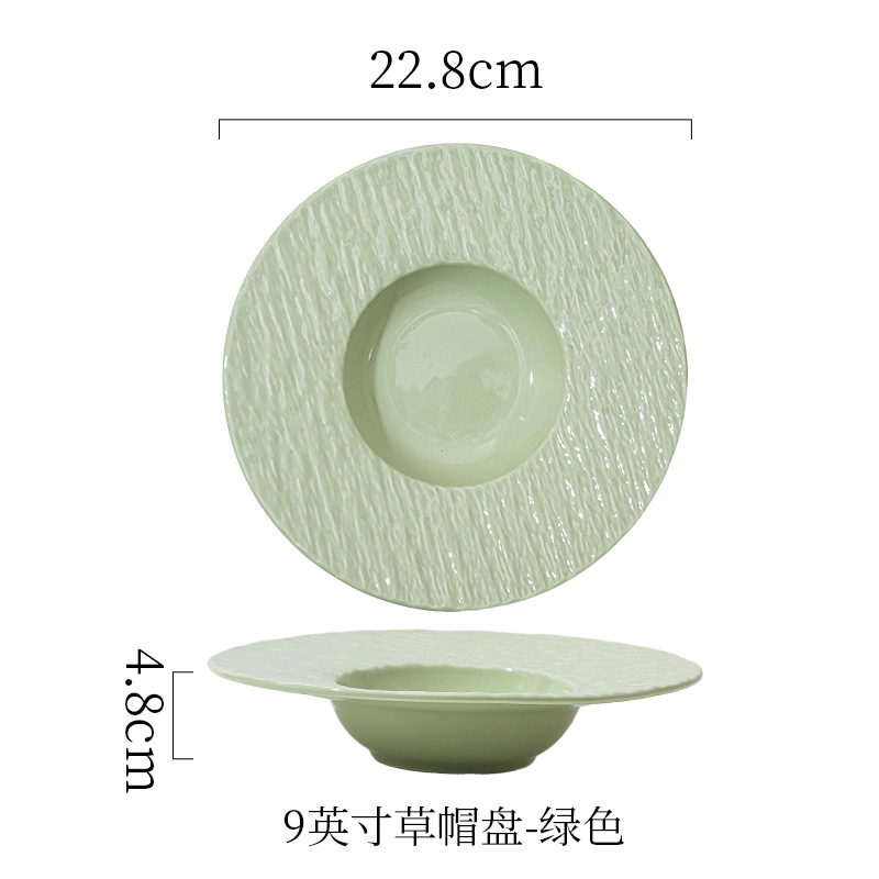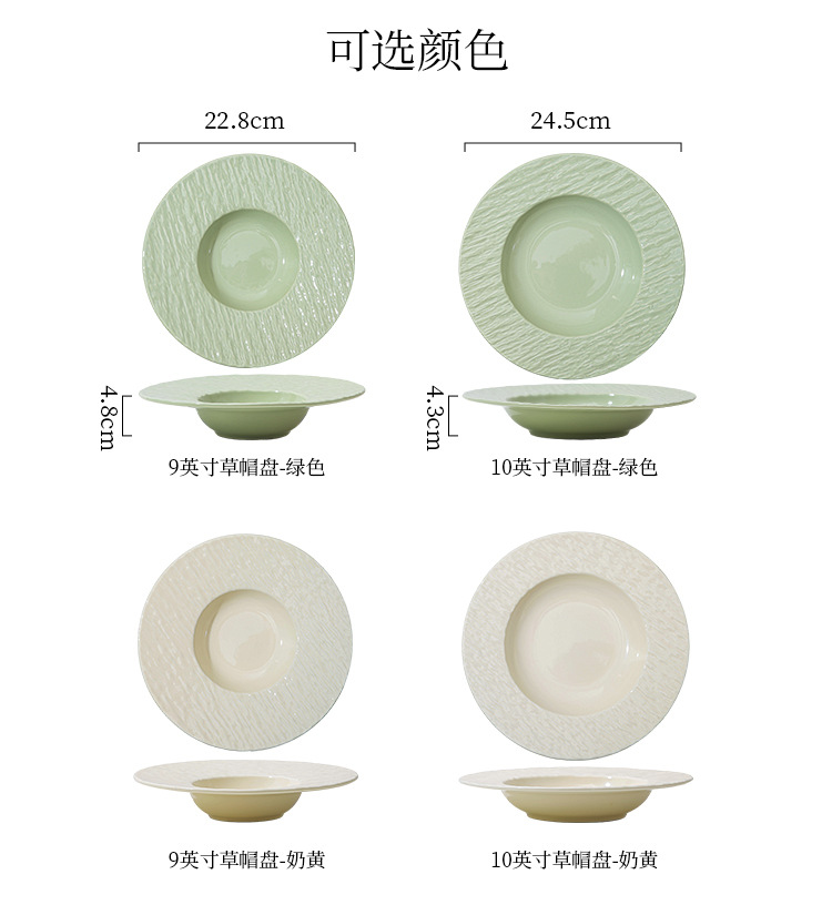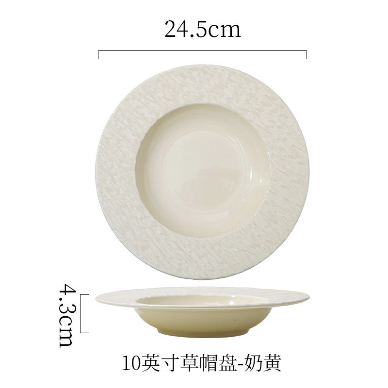 간단한 크림 스타일 세라믹 웨스턴 플레이트 호텔 가정용 파스타 플레이트 밀짚 모자 플레이트 스프 플레이트 디너 플레이트 샐러드 플레이트
