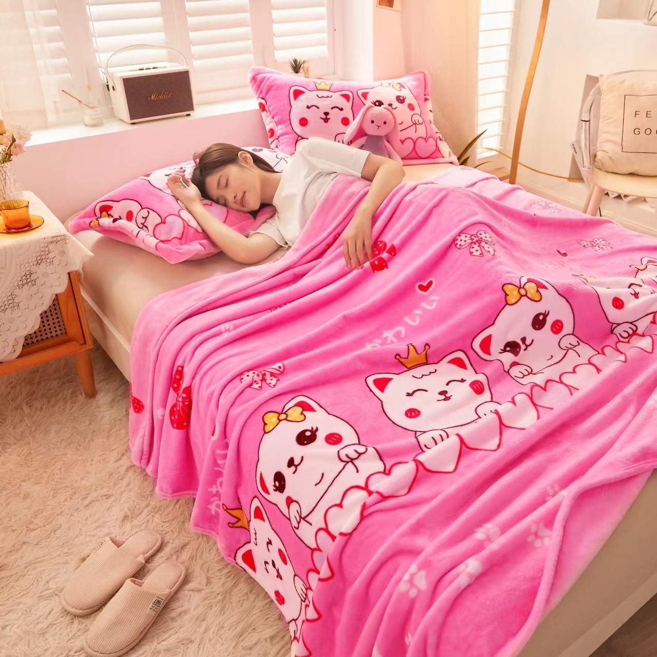 팅미나 담요 두꺼운 담요 만화 침대 시트 우유 담요 사무실 낮잠 플러스 벨벳 소프트 담요