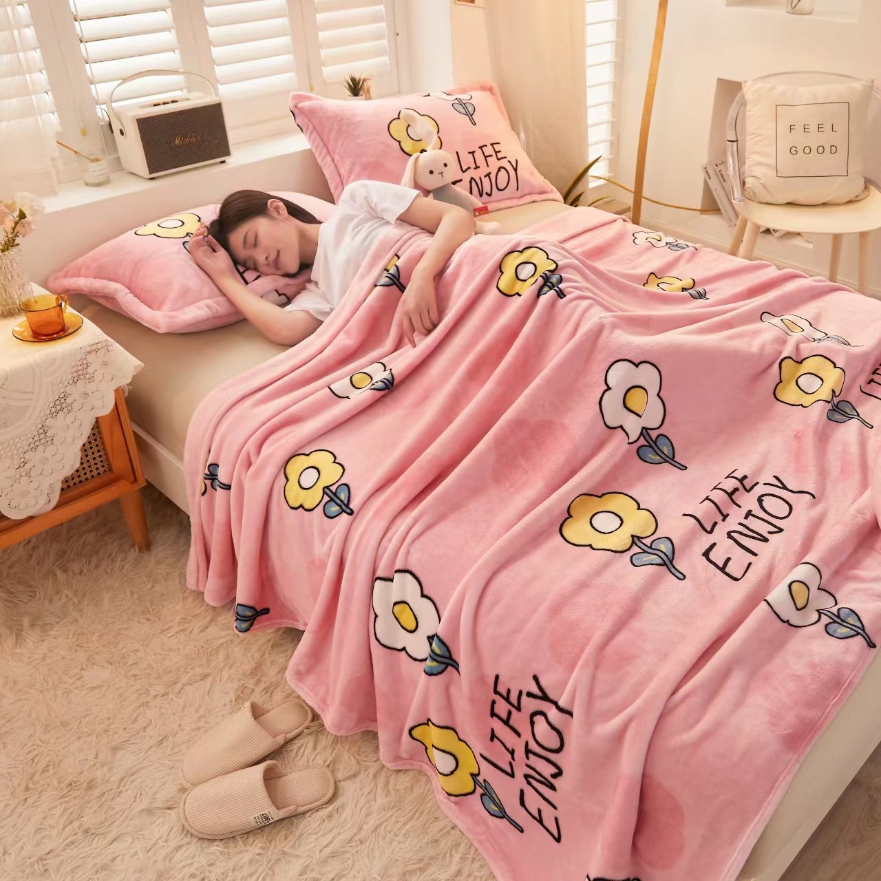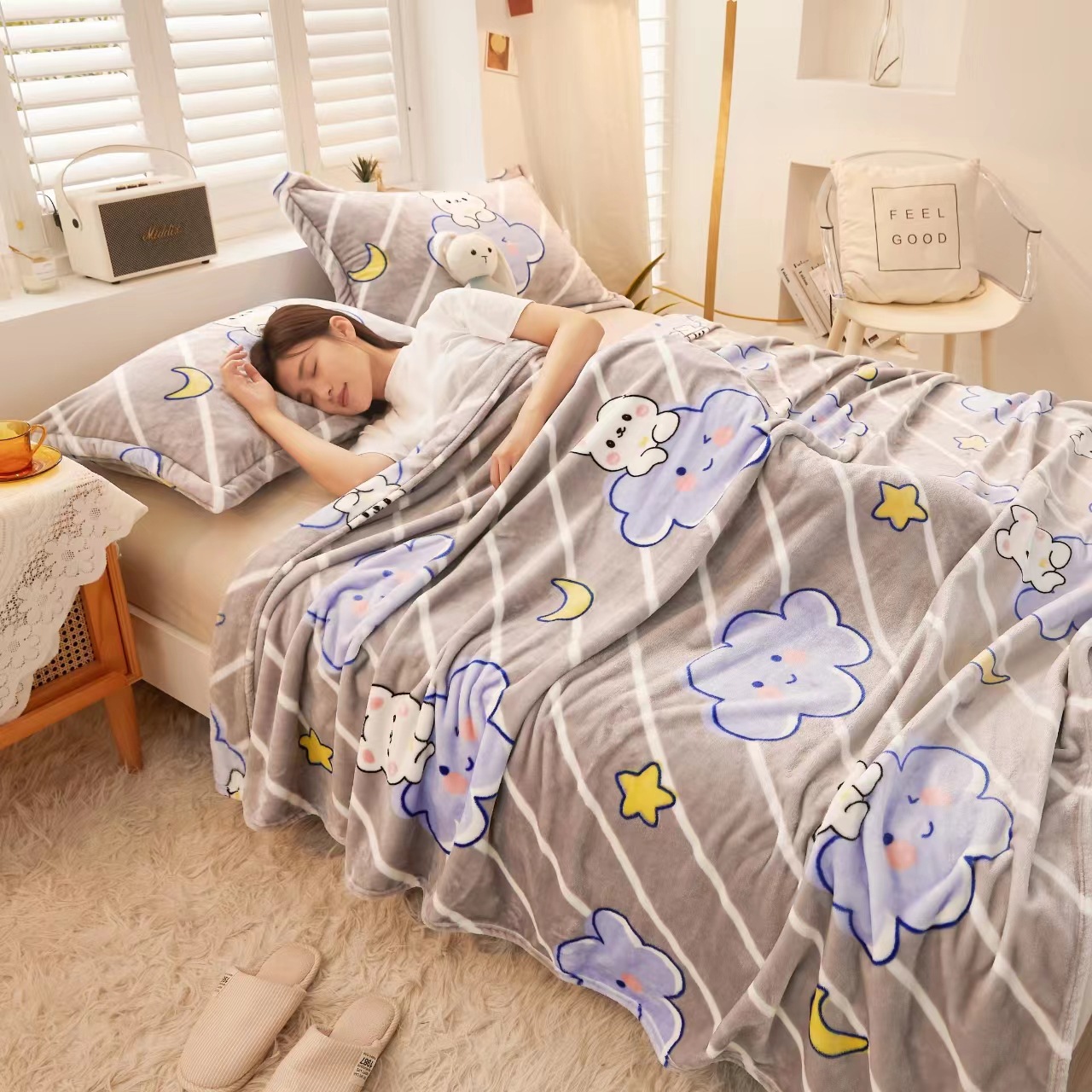 팅미나 담요 두꺼운 담요 만화 침대 시트 우유 담요 사무실 낮잠 플러스 벨벳 소프트 담요스토어 가기
