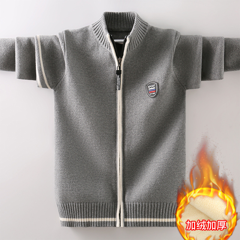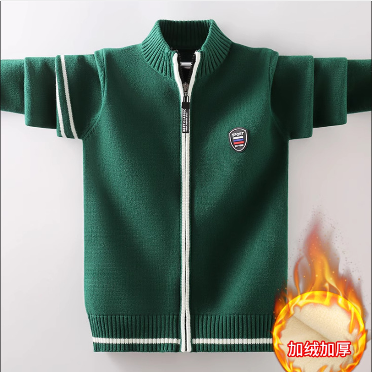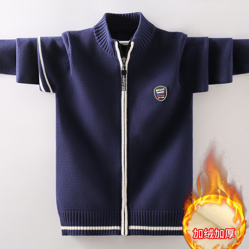어린이 카디건 스웨터 소년 가을과 겨울 니트 지퍼 코트면 스웨터 기모 두꺼운 빨간색 스탠드 칼라
