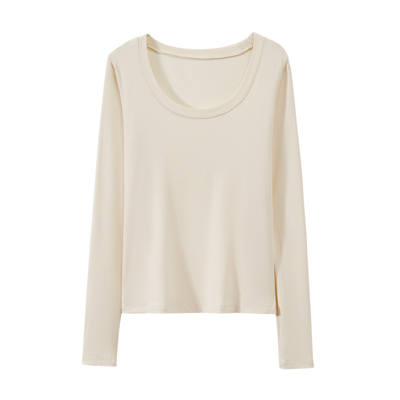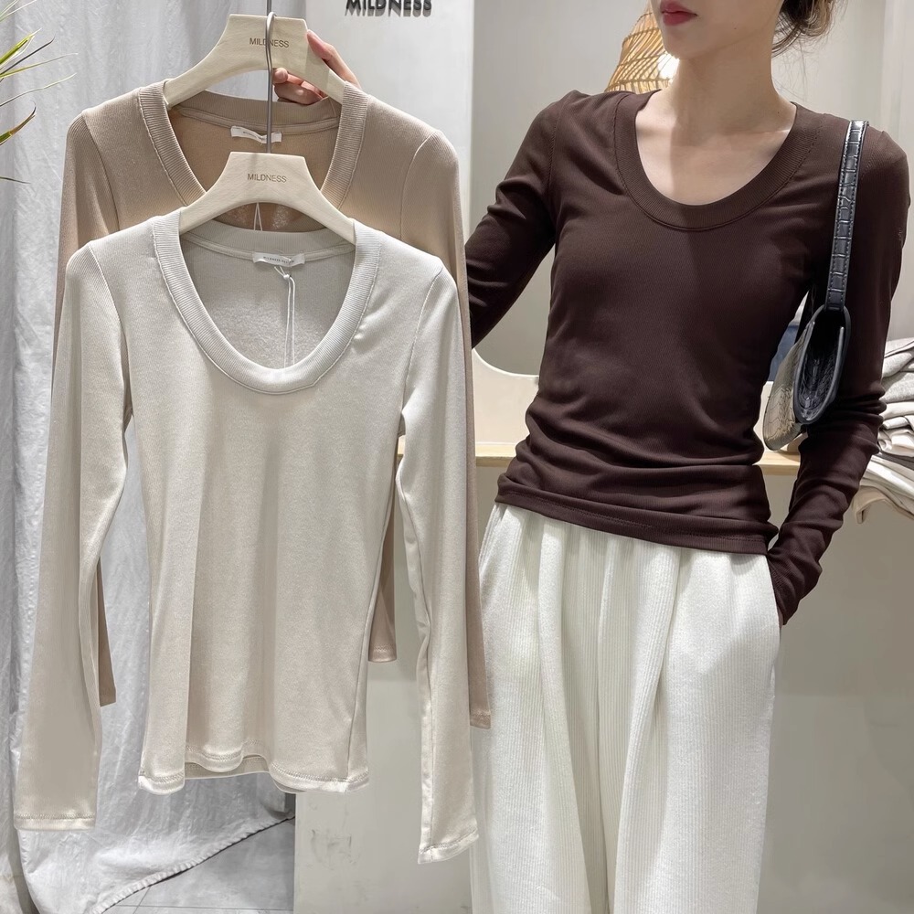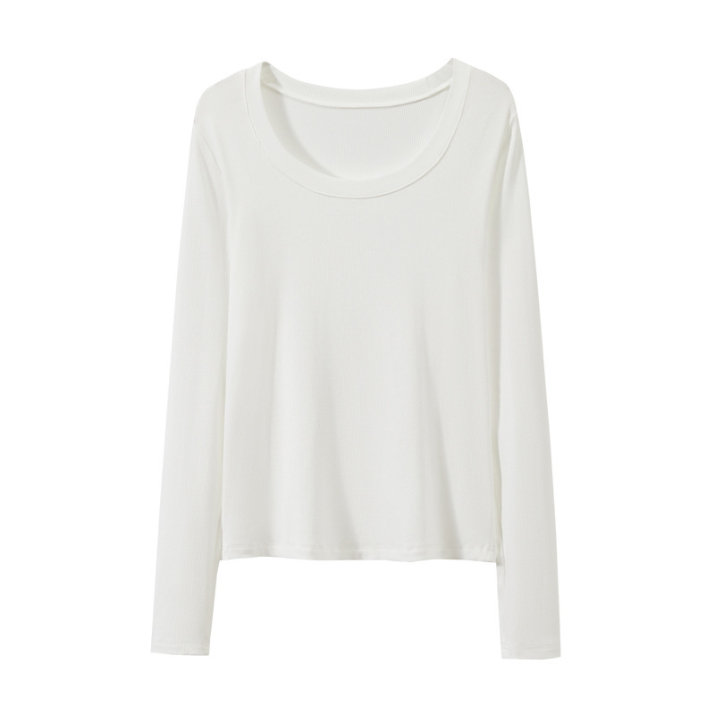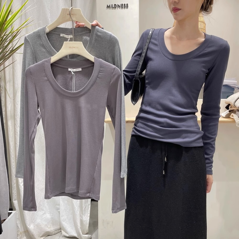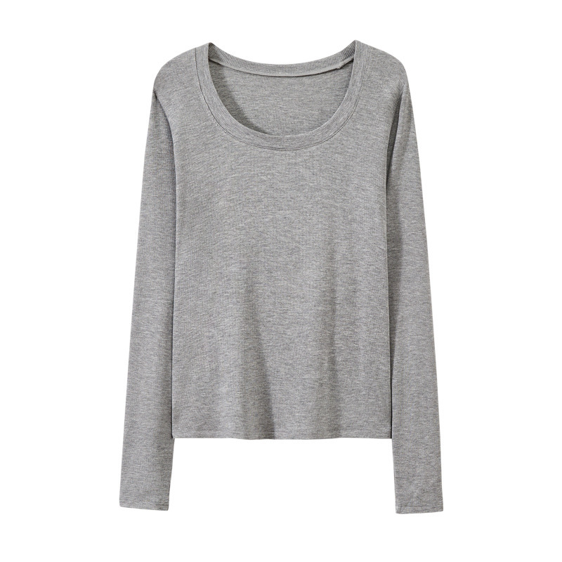검은 바지 셔츠 여성용 긴 소매 2023 초가을 새로운 대형 라운드 넥 캐주얼 티셔츠 고급 스레드 탑 이너 웨어스토어 가기