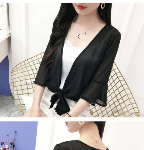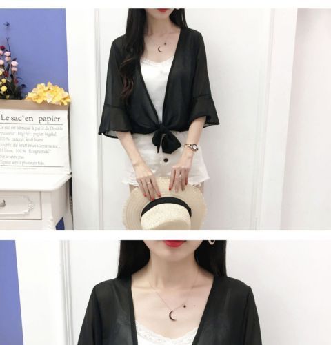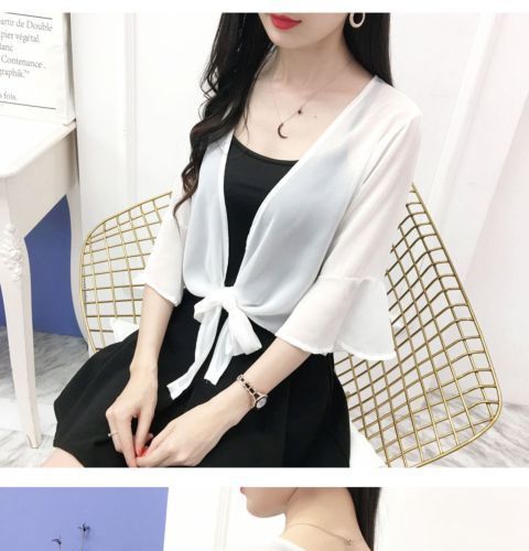 작은 목도리 쉬폰 코트 여성용 여름 겉옷 서스펜더 스커트 다목적 슈퍼 요정 셔츠 레이스 태양 보호 의류 카디건스토어 가기