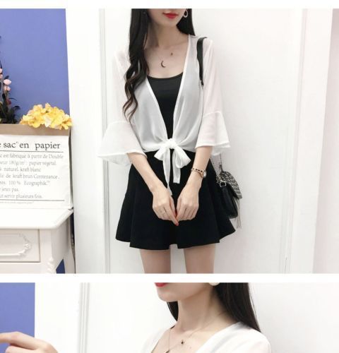 작은 목도리 쉬폰 코트 여성용 여름 겉옷 서스펜더 스커트 다목적 슈퍼 요정 셔츠 레이스 태양 보호 의류 카디건