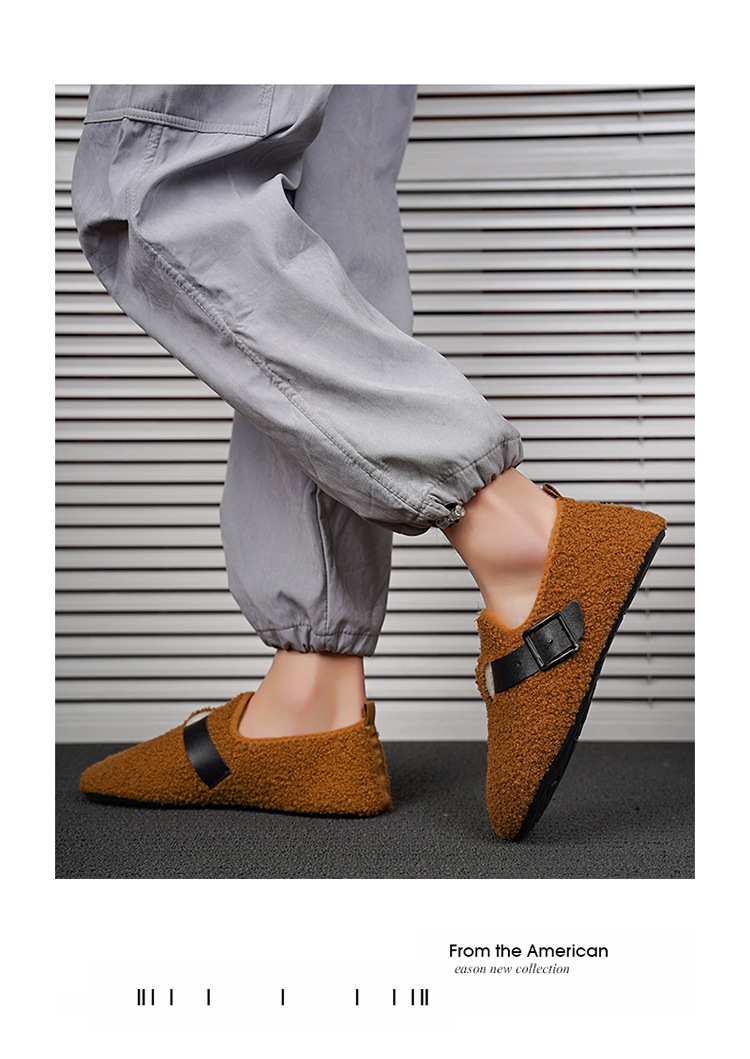 2023 새로운 양고기 울 소프트 솔면 신발 캐주얼 야외 기모 두꺼운 따뜻한 페달 신발 마오 신발스토어 가기