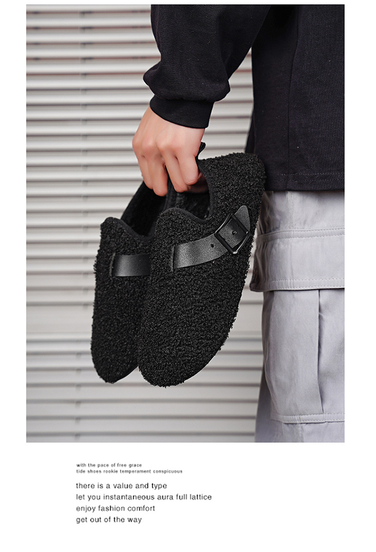 2023 새로운 양고기 울 소프트 솔면 신발 캐주얼 야외 기모 두꺼운 따뜻한 페달 신발 마오 신발