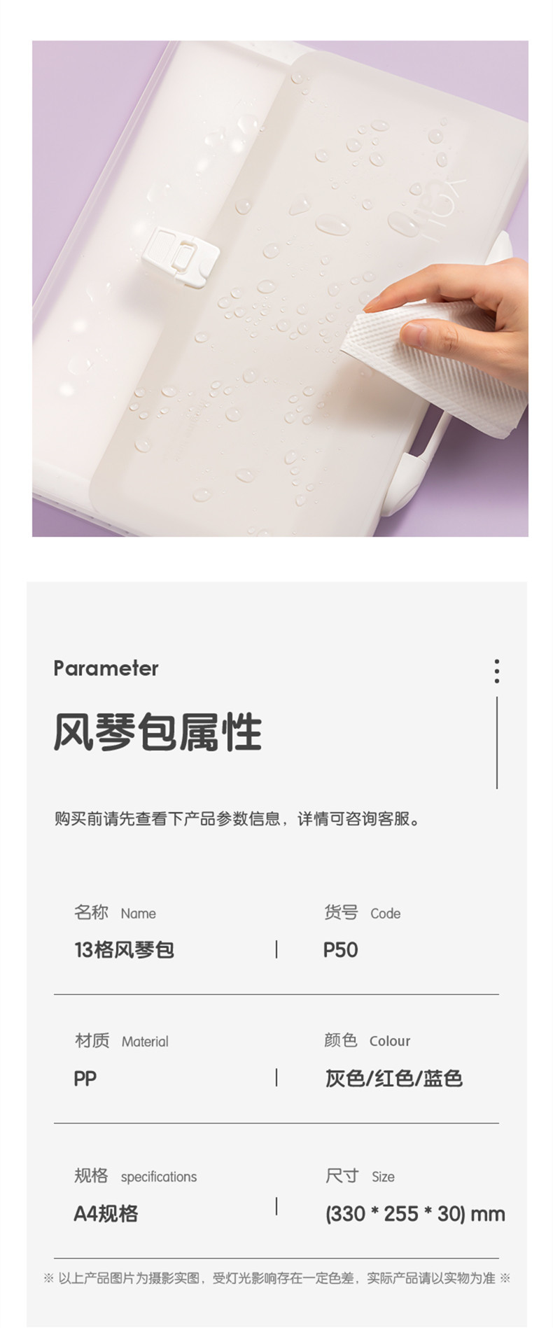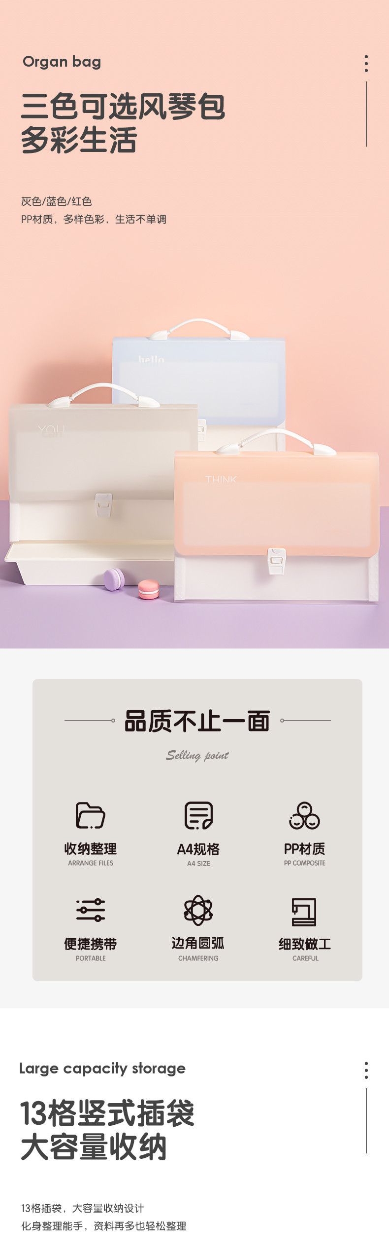 델리 P50 라이트 인상 13칸 오르간 가방 A4 대용량 휴대용 삽입 시험지 정보 정리 수납 가방