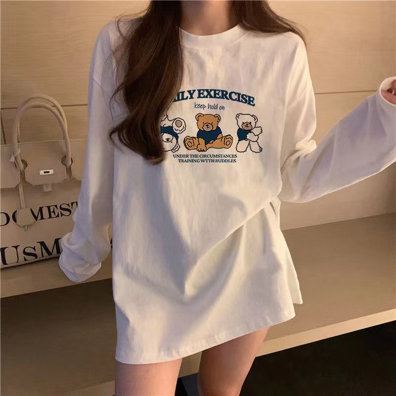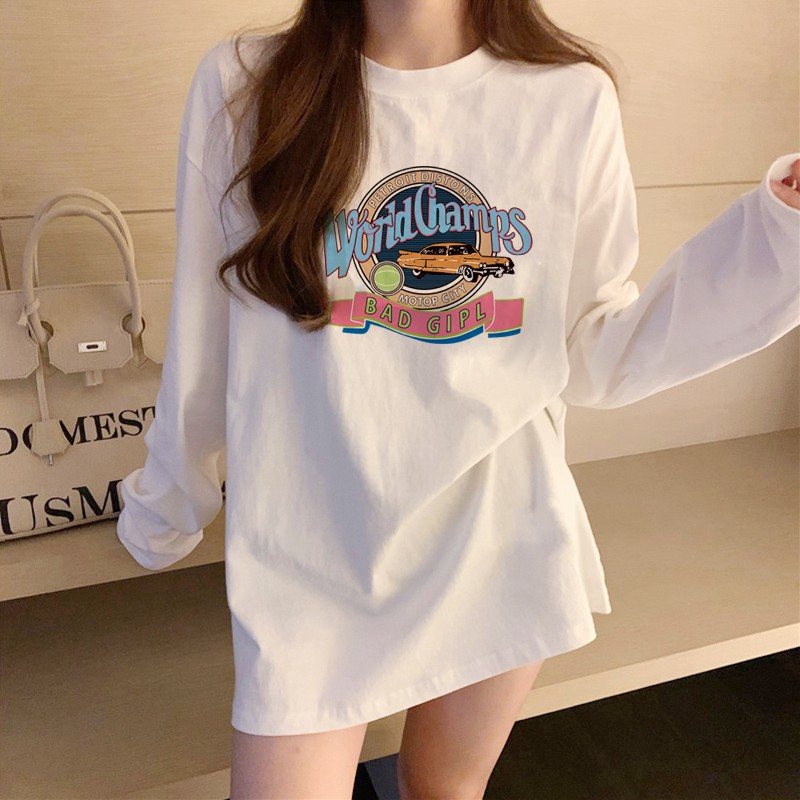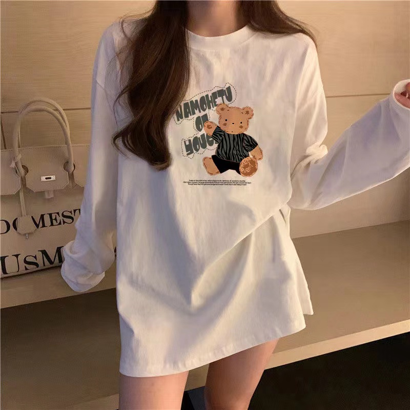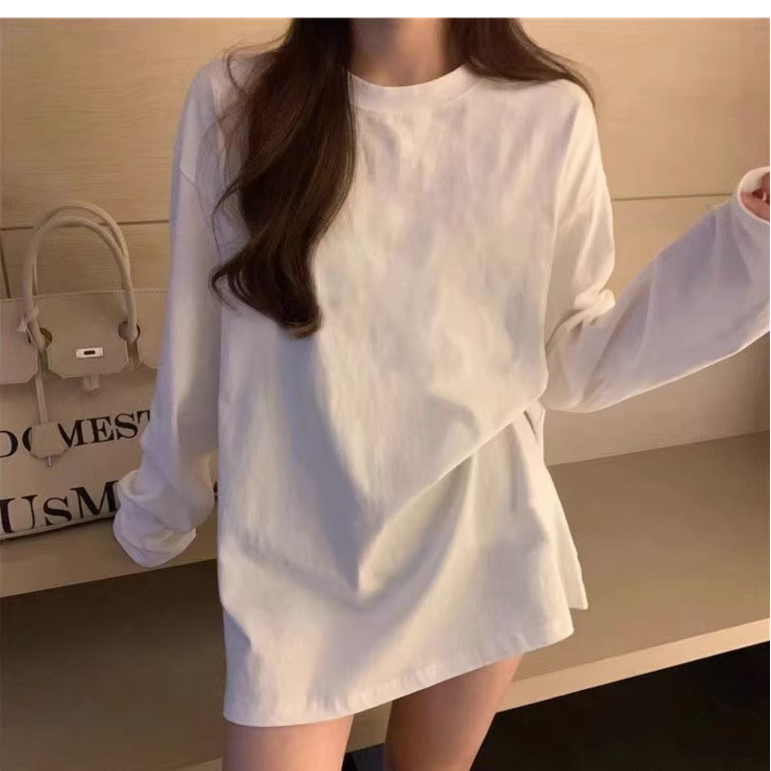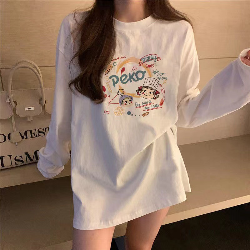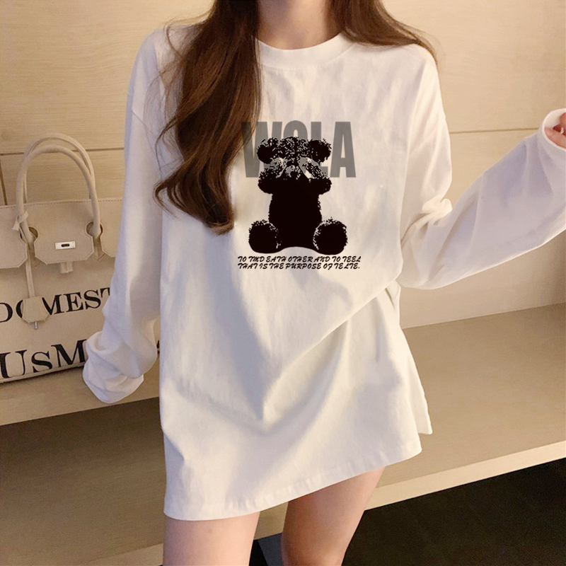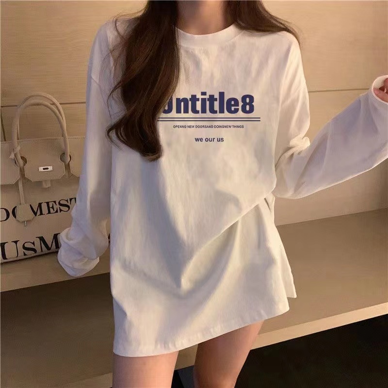 유럽식 흰색 티셔츠 여성용 긴 소매 2024 봄과 가을의 새로운 내복 엉덩이 커버 솔질면 긴 바닥 셔츠스토어 가기