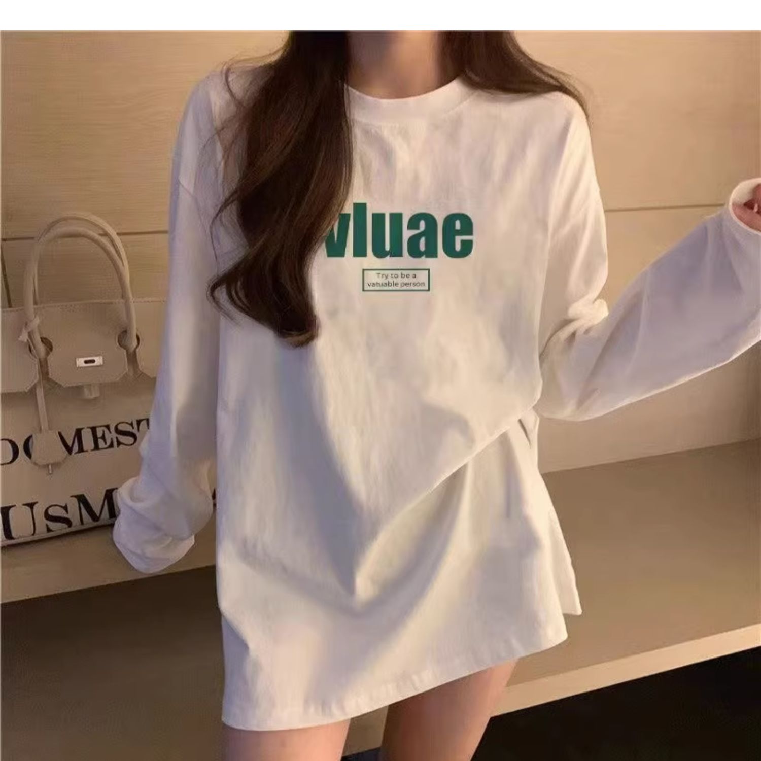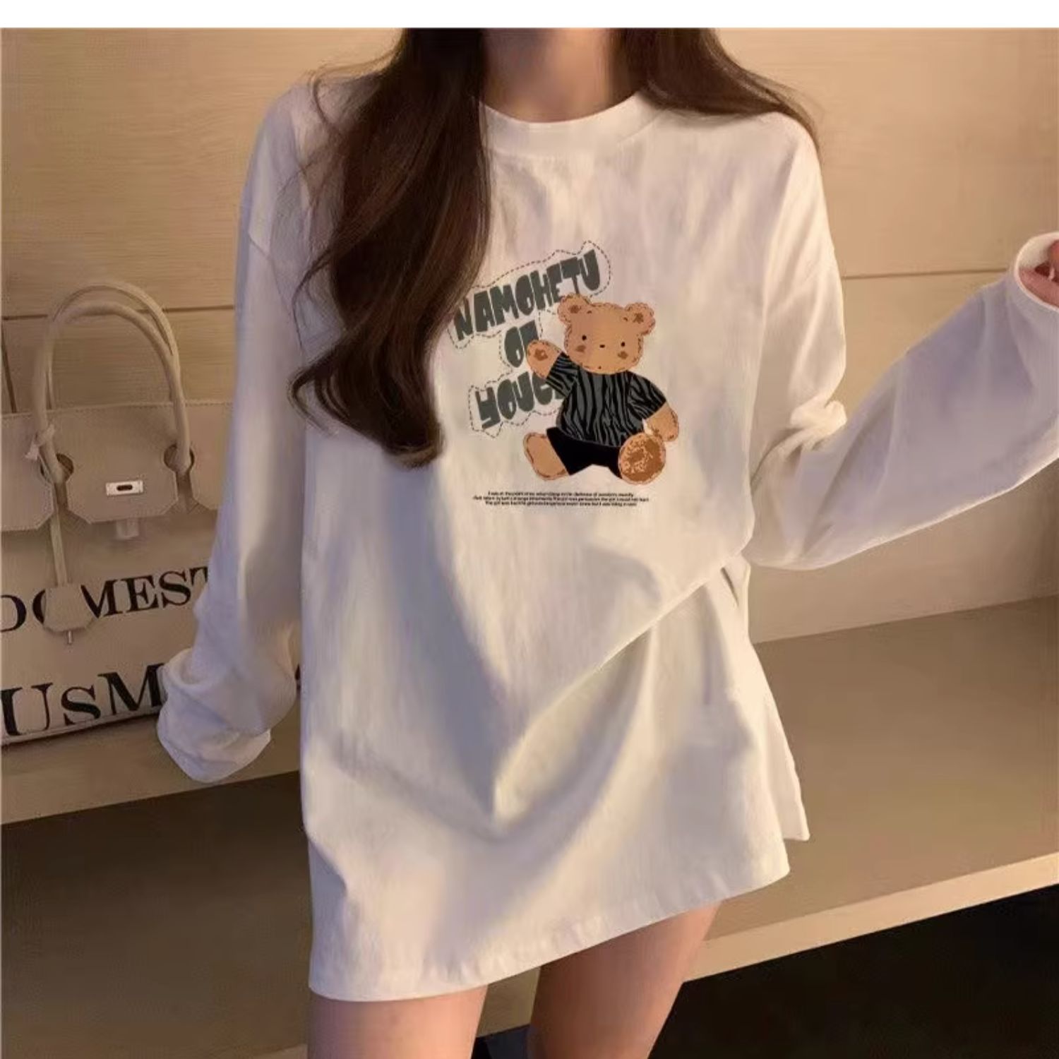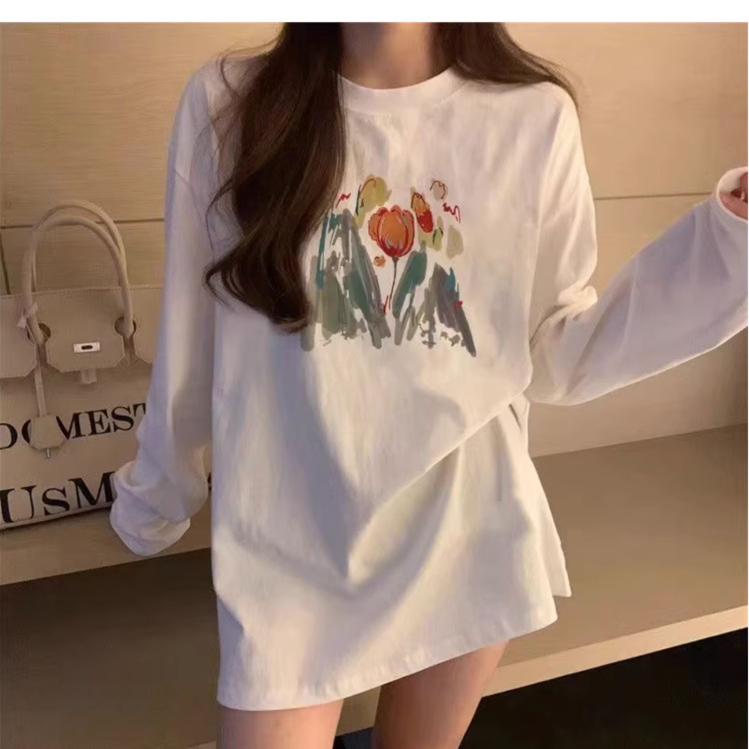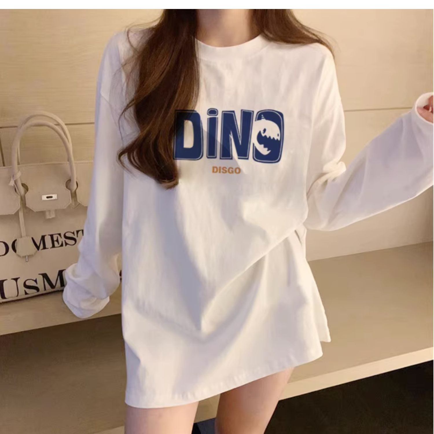 유럽식 흰색 티셔츠 여성용 긴 소매 2024 봄과 가을의 새로운 내복 엉덩이 커버 솔질면 긴 바닥 셔츠스토어 가기