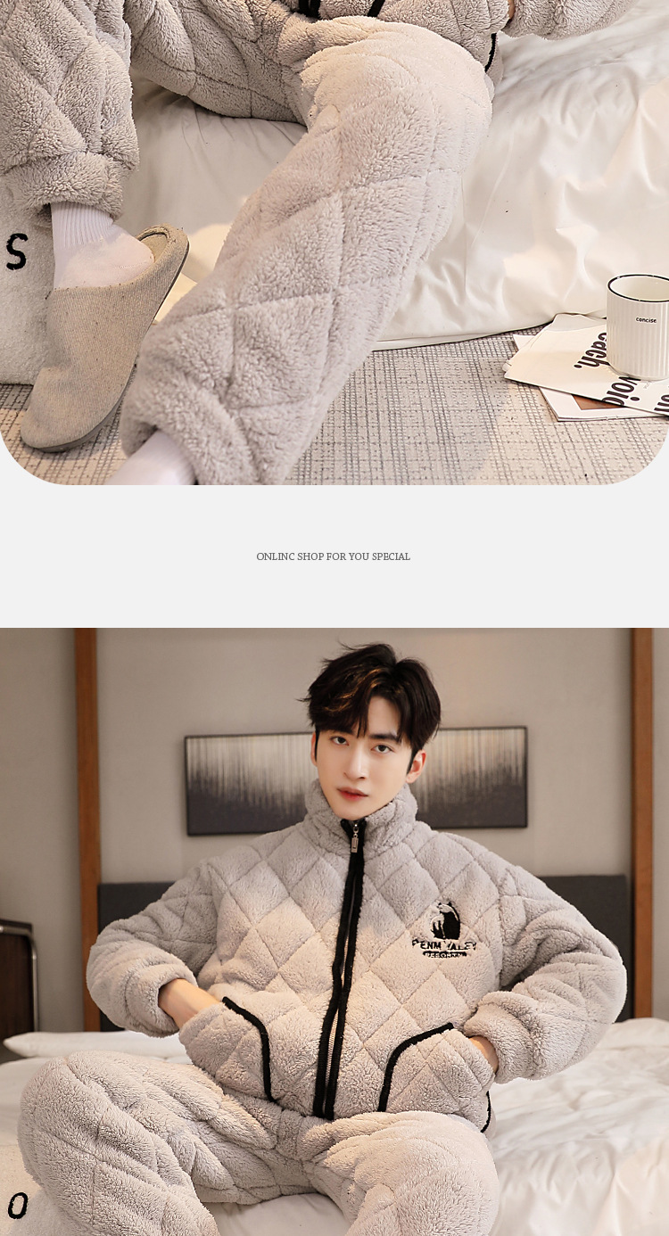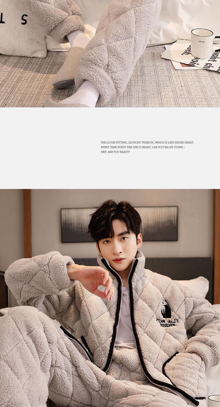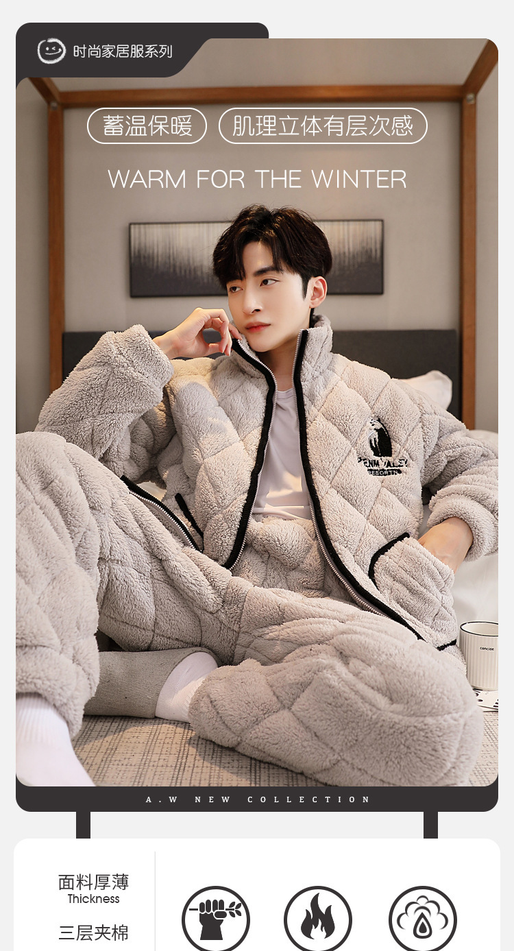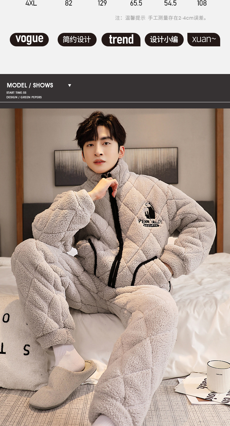 국경 간 가을과 겨울 3 층 퀼트 기모 두꺼운 남성 잠옷 지퍼 따뜻한 집은 실제 샷 배달 밖에서 착용 할 수 있습니다스토어 가기