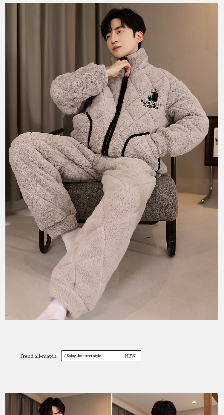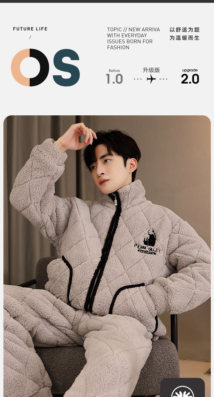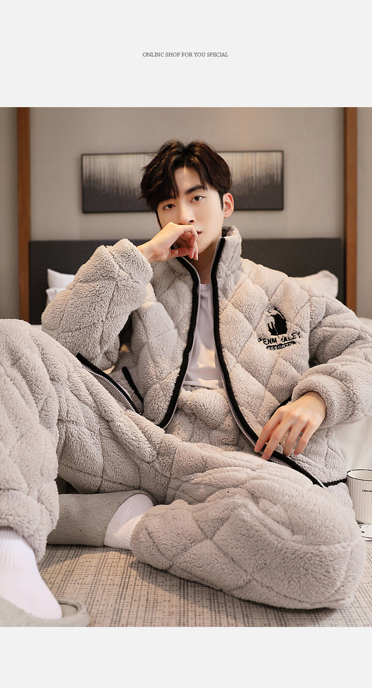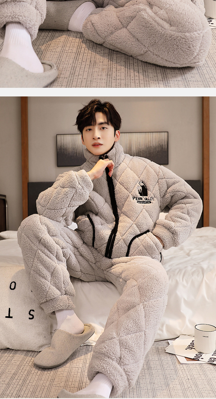 국경 간 가을과 겨울 3 층 퀼트 기모 두꺼운 남성 잠옷 지퍼 따뜻한 집은 실제 샷 배달 밖에서 착용 할 수 있습니다스토어 가기