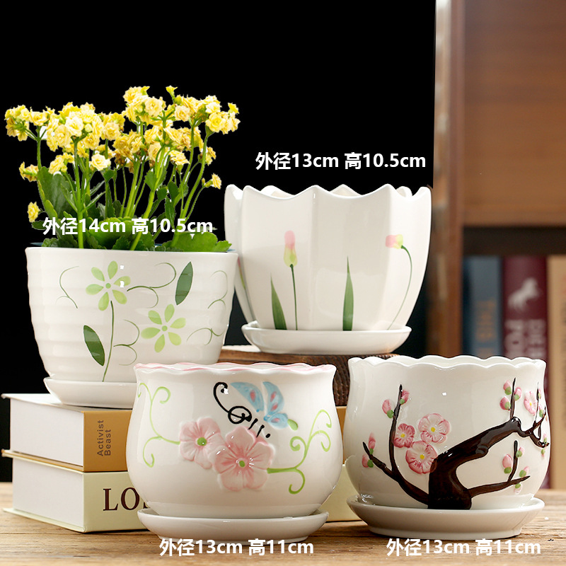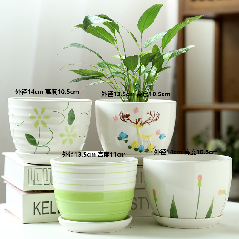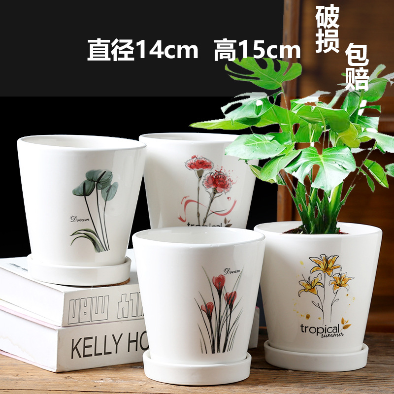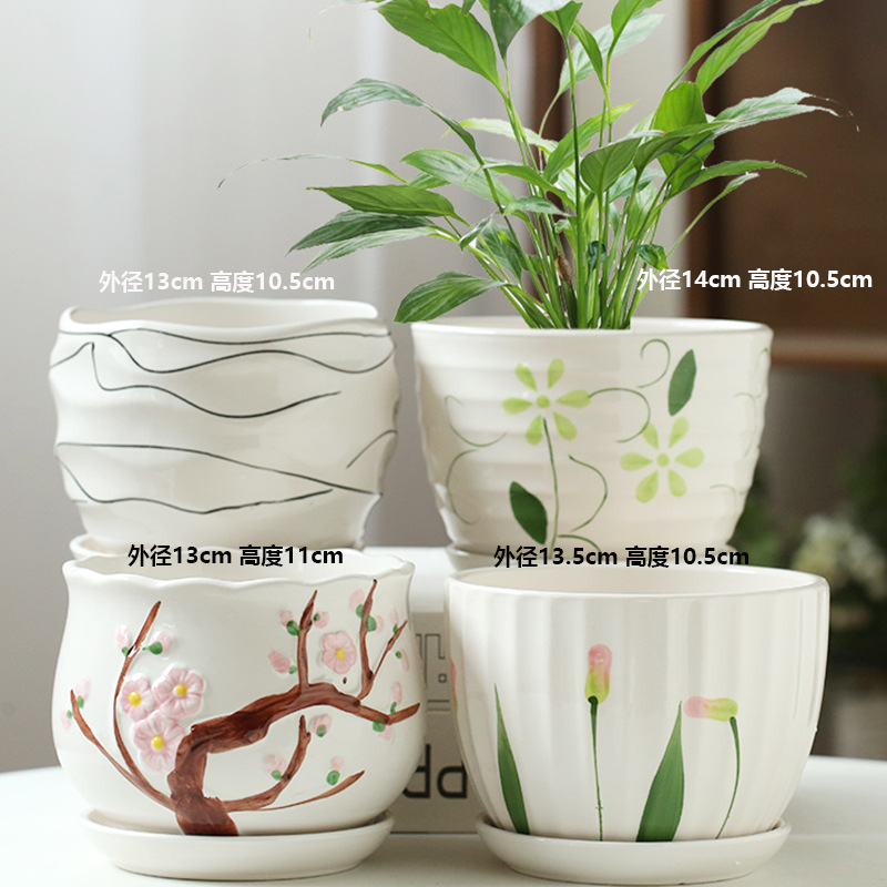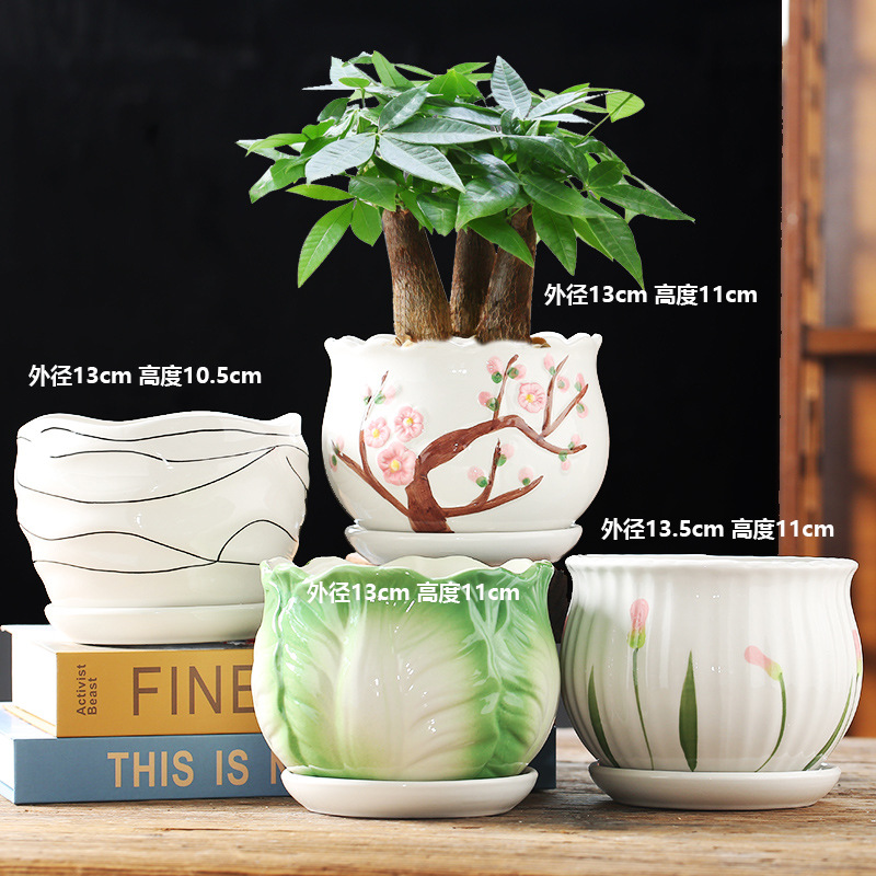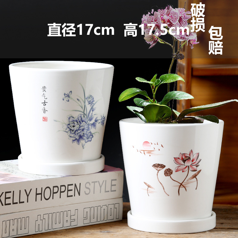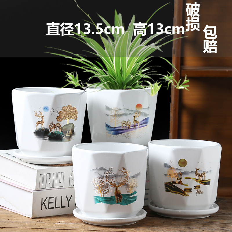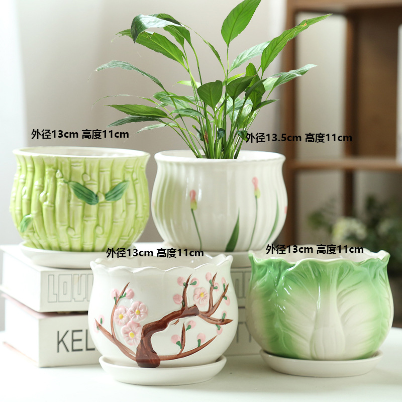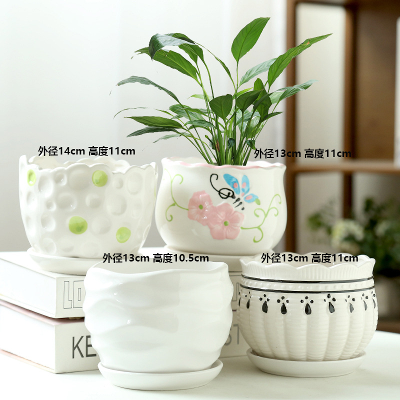 사이버 축하 꽃 냄비 세라믹 클리어런스 대형 가정용 녹색 장미 다육 녹색 식물 흰색 호접란 냄비 도매 TEMU