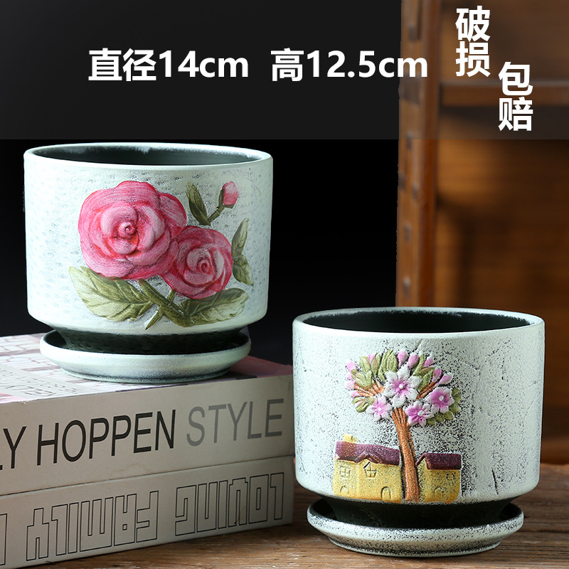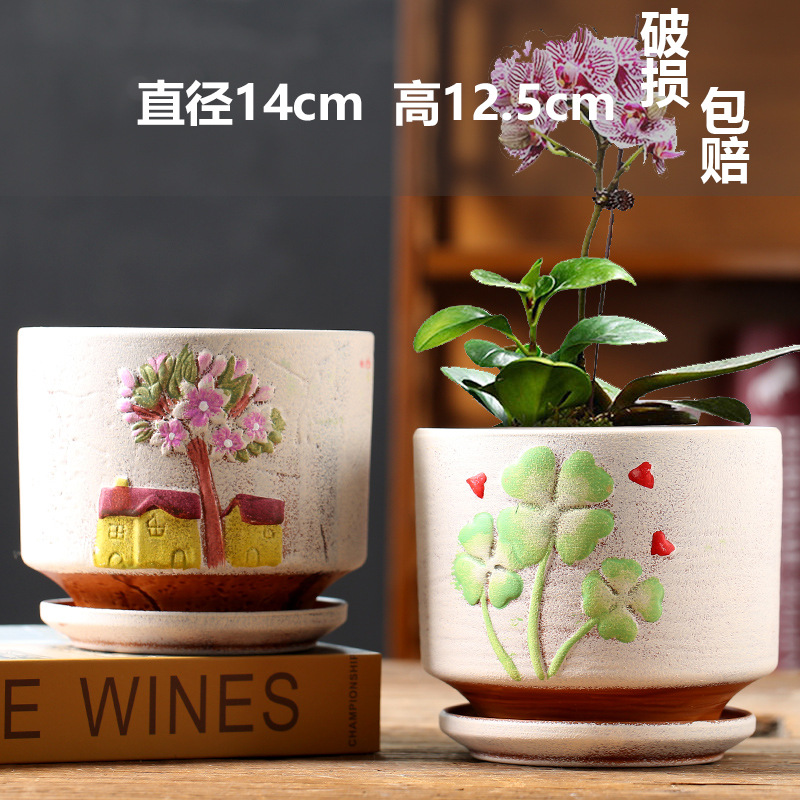 사이버 축하 꽃 냄비 세라믹 클리어런스 대형 가정용 녹색 장미 다육 녹색 식물 흰색 호접란 냄비 도매 TEMU스토어 가기