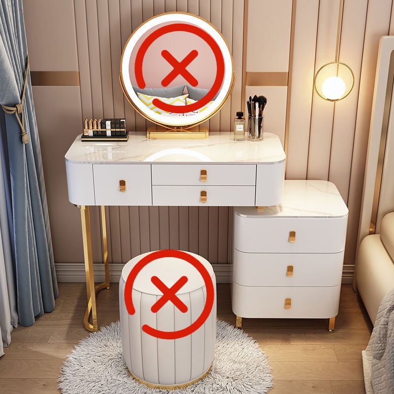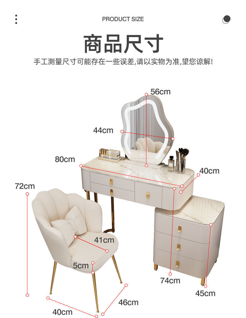 • 흰색 120cm 테이블 캐비닛 거울 둥근 의자