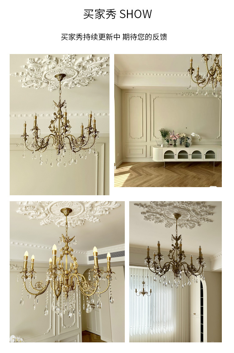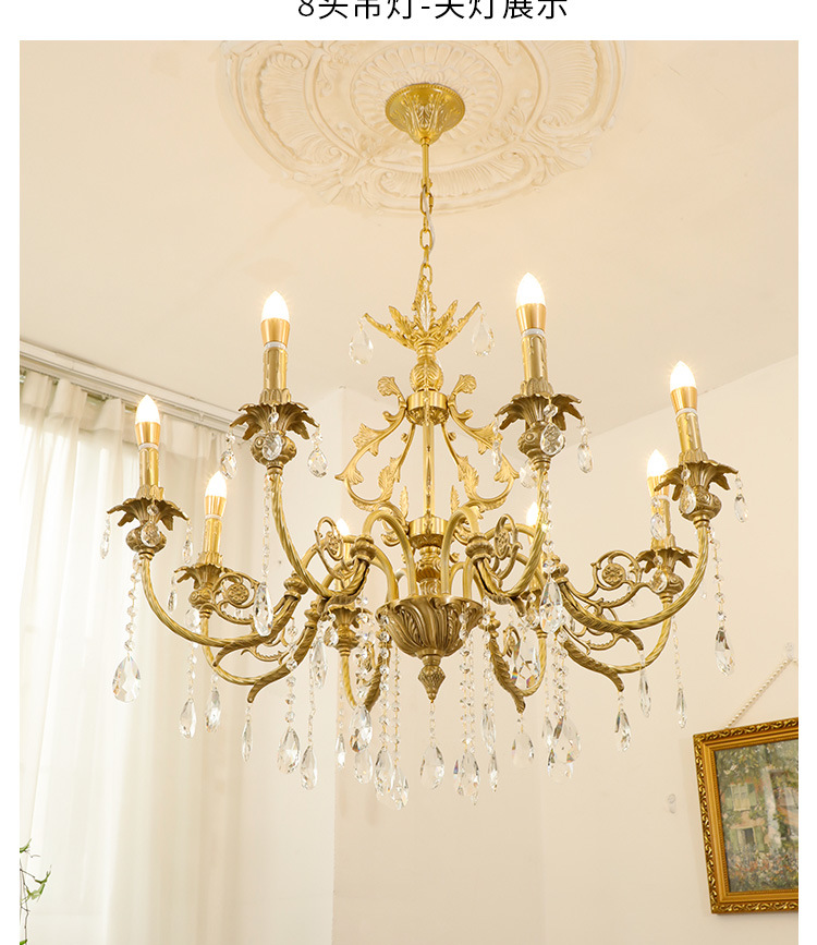 중산 램프 중 고대 클래식 황동 크리스탈 캔들 램프 프랑스 복고풍 거실 침실 식당 빌라 샹들리에
