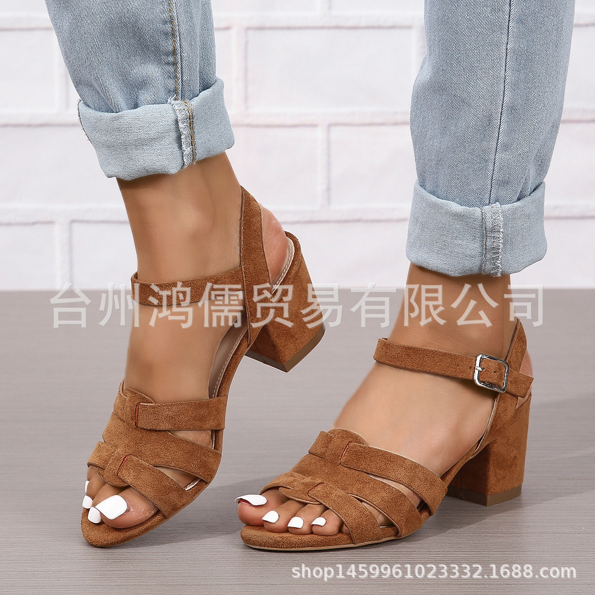 재고 유럽과 미국의 새로운 대외 무역 플러스 사이즈 여성 신발 여름 휴가 스타일 다크 브라운 여성 샌들 여성 샌들스토어 가기