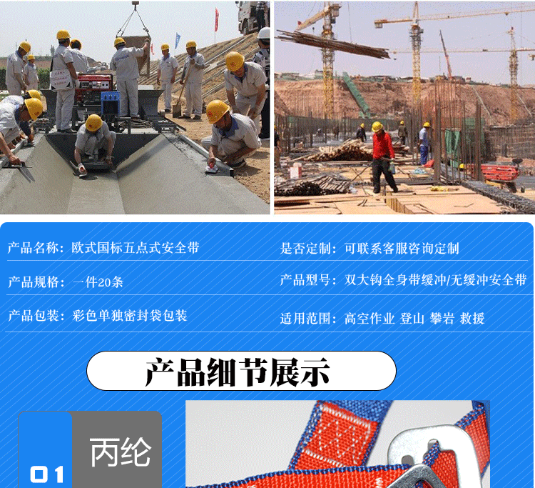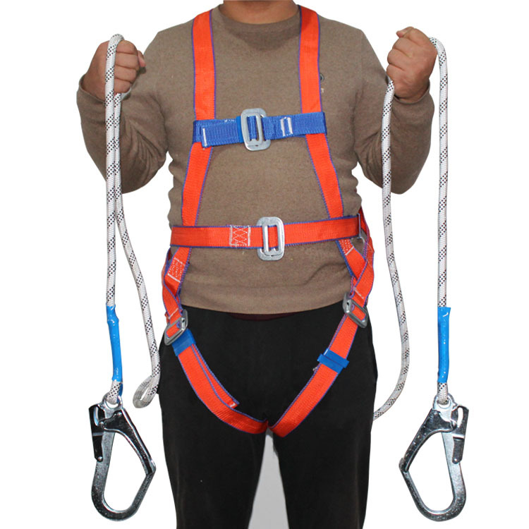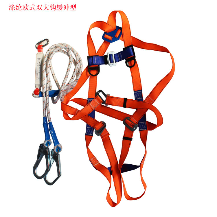 유럽 스타일의 유럽 표준 전신 더블 큰 후크 버퍼 백 안전 벨트 높은 고도 낙하 암벽 등반 안전 로프