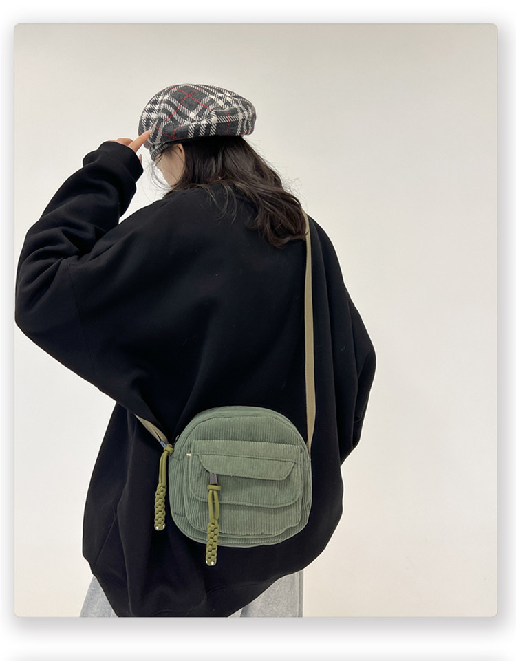 2024 봄 새로운 패션 간단한 단색 코듀로이 천 가방 캠퍼스 스타일 소녀 어깨 크로스 바디 작은 사각형 가방 패션