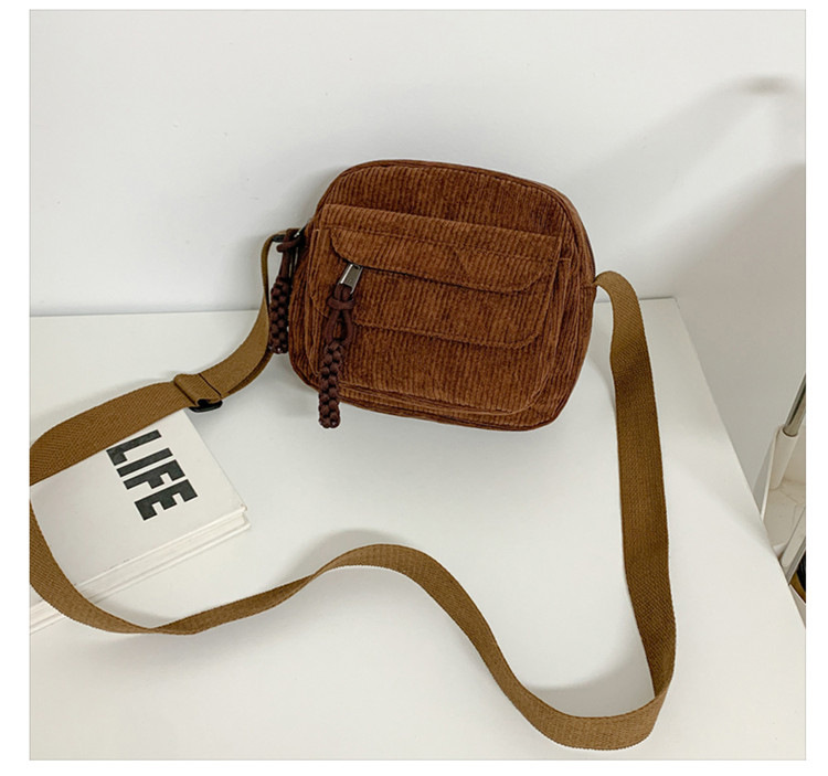 2024 봄 새로운 패션 간단한 단색 코듀로이 천 가방 캠퍼스 스타일 소녀 어깨 크로스 바디 작은 사각형 가방 패션스토어 가기