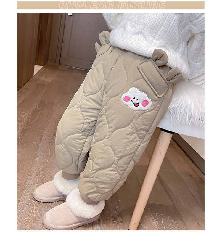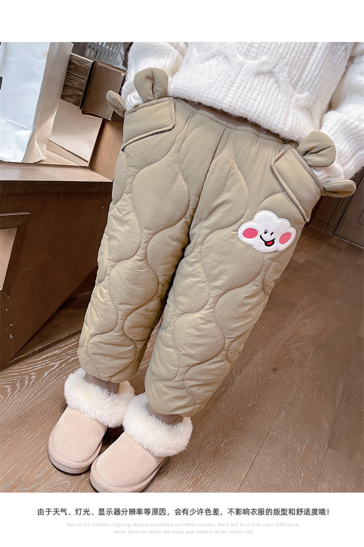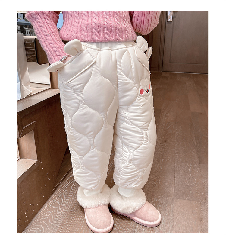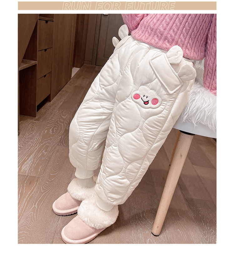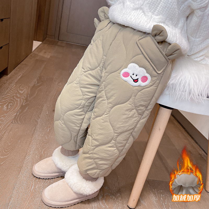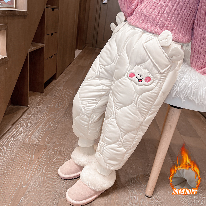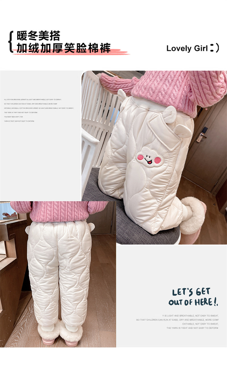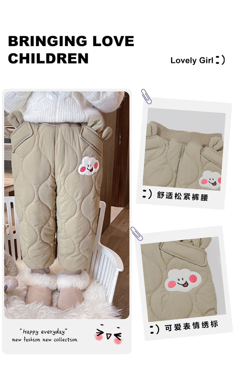 아기 소녀의 웃는 얼굴 자수 면화 바지 겨울 새로운 소녀 기모 두껍게 한 겨울 겉옷 따뜻한 바지
