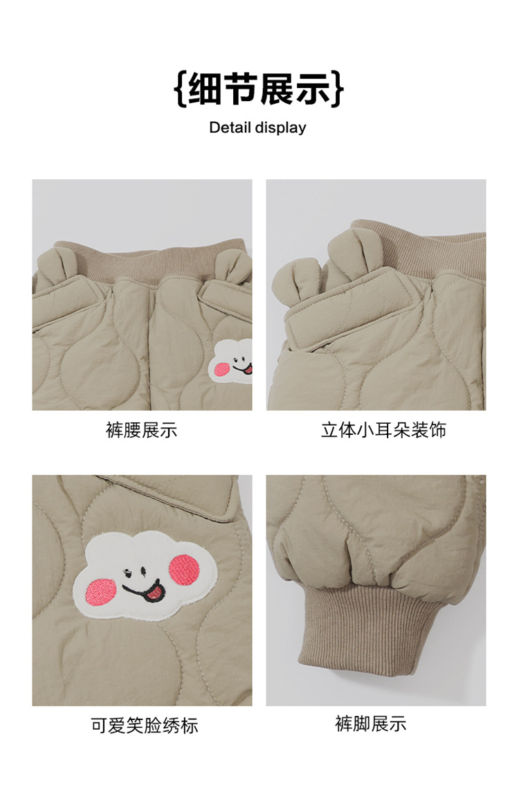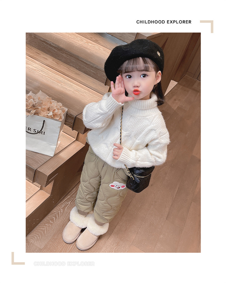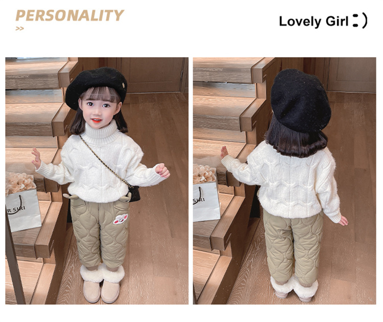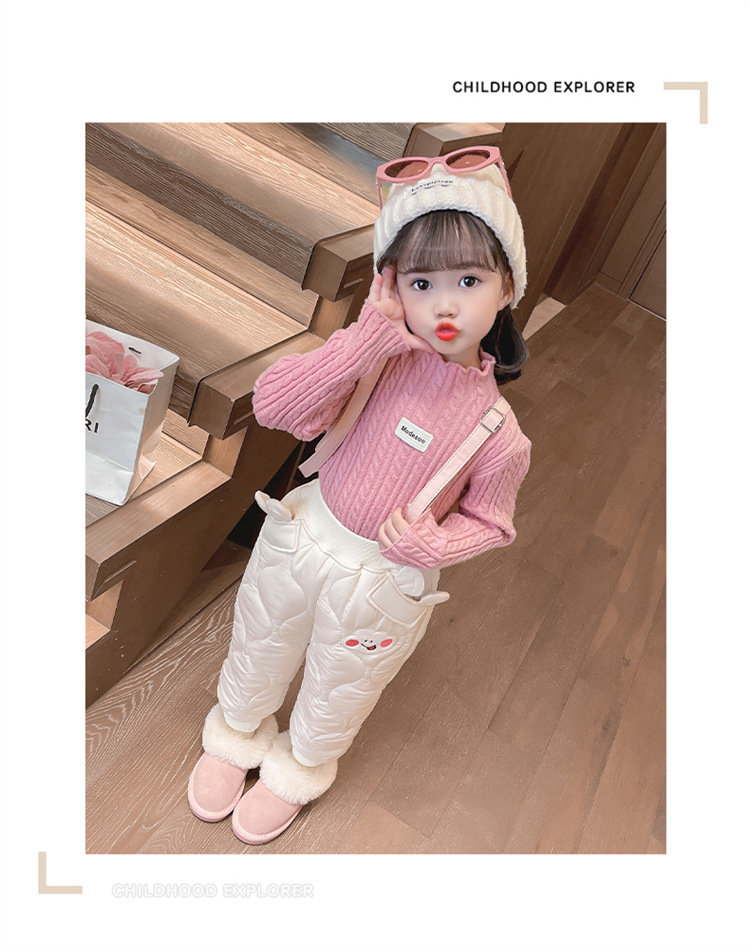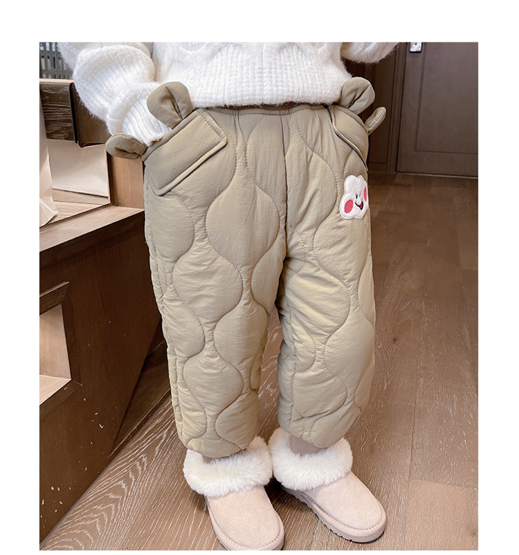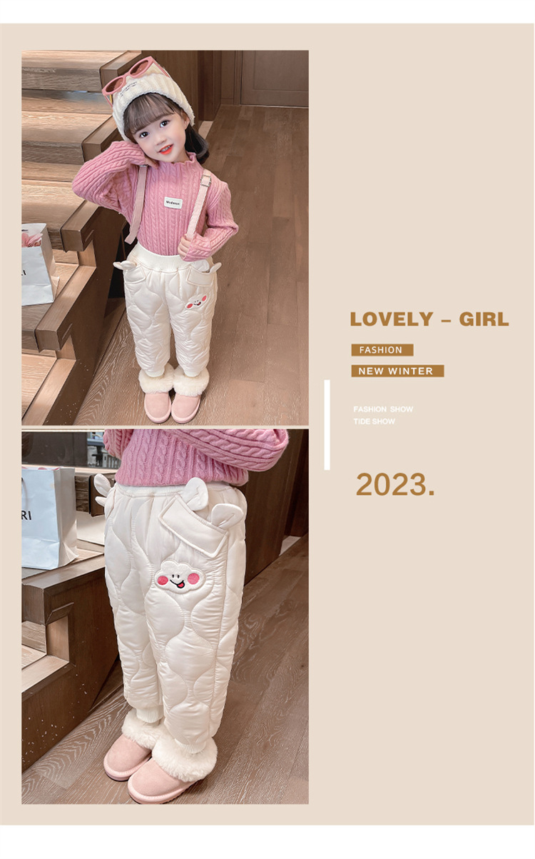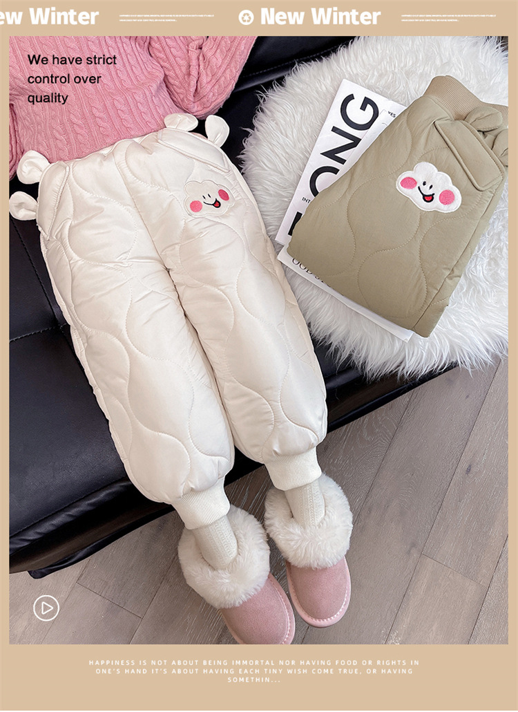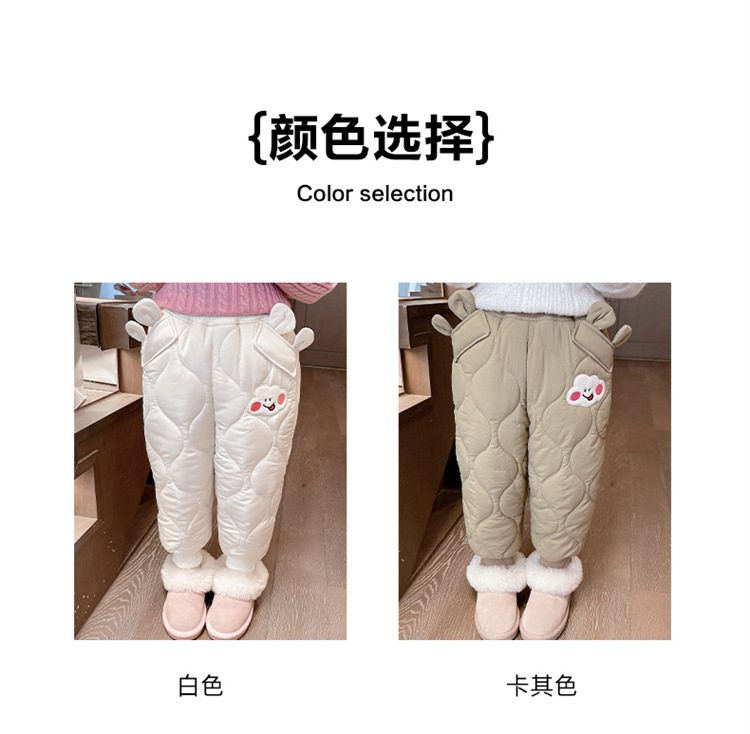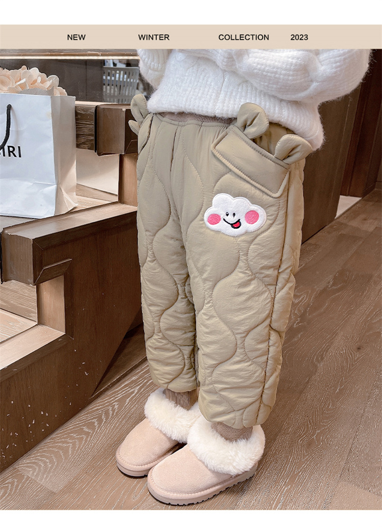 아기 소녀의 웃는 얼굴 자수 면화 바지 겨울 새로운 소녀 기모 두껍게 한 겨울 겉옷 따뜻한 바지