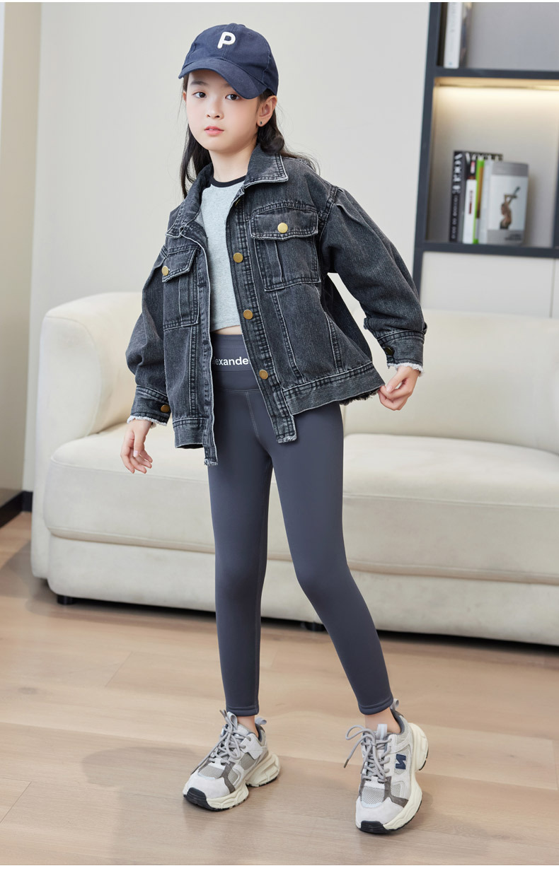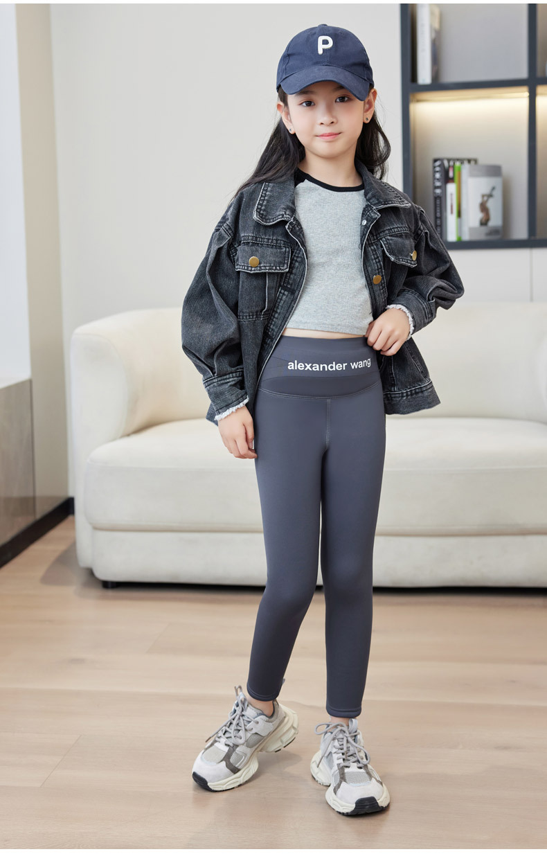 2023 새 소녀 레깅스 가을과 겨울 겉옷 기모 두껍게 된 중형 및 대형 어린이 상어 바지 검은 바비 바지스토어 가기