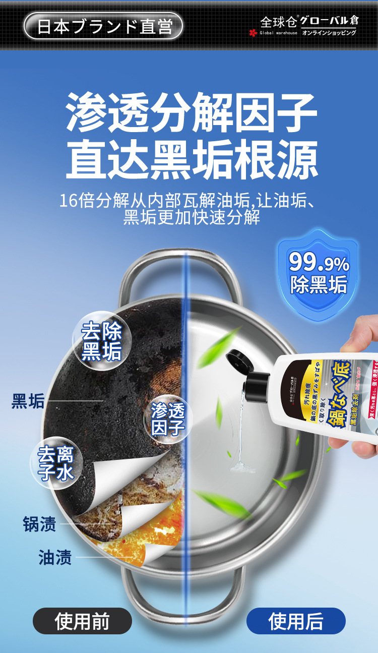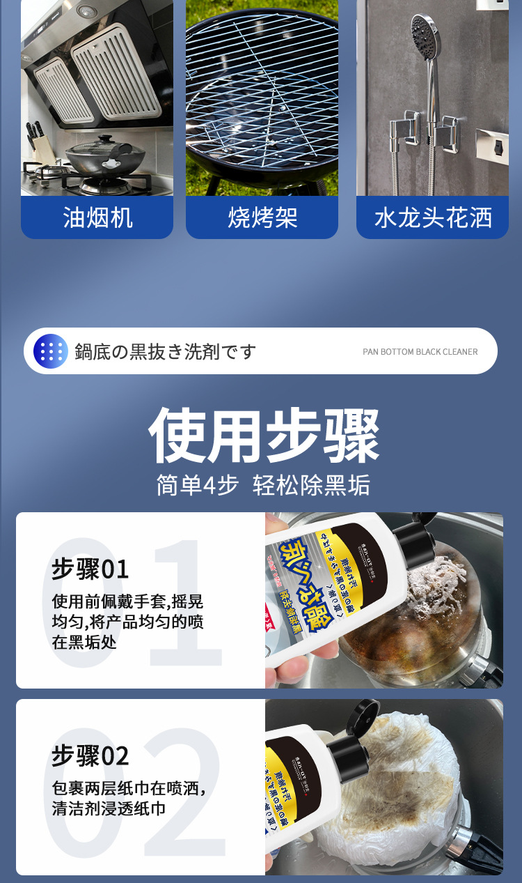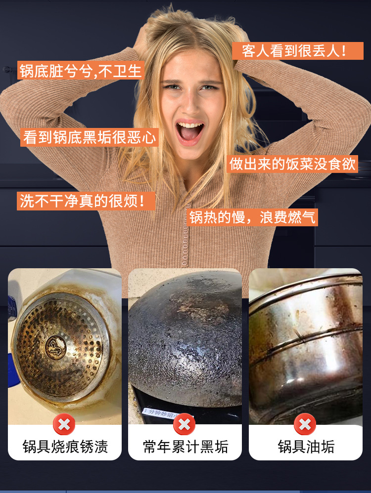 냄비 바닥 블랙 스케일 청소기 스테인레스 스틸 철 냄비 다기능 청소기 가정용 강력한 오염 제거 블랙 스케일 제거 유물스토어 가기
