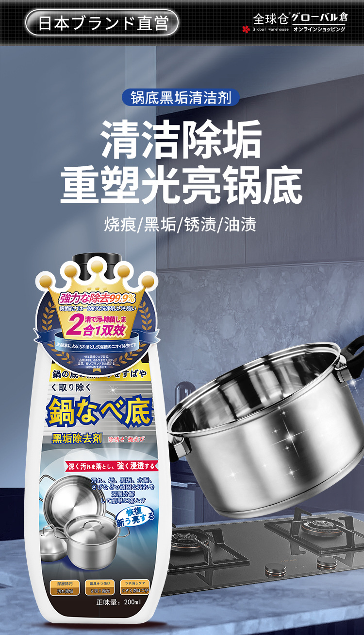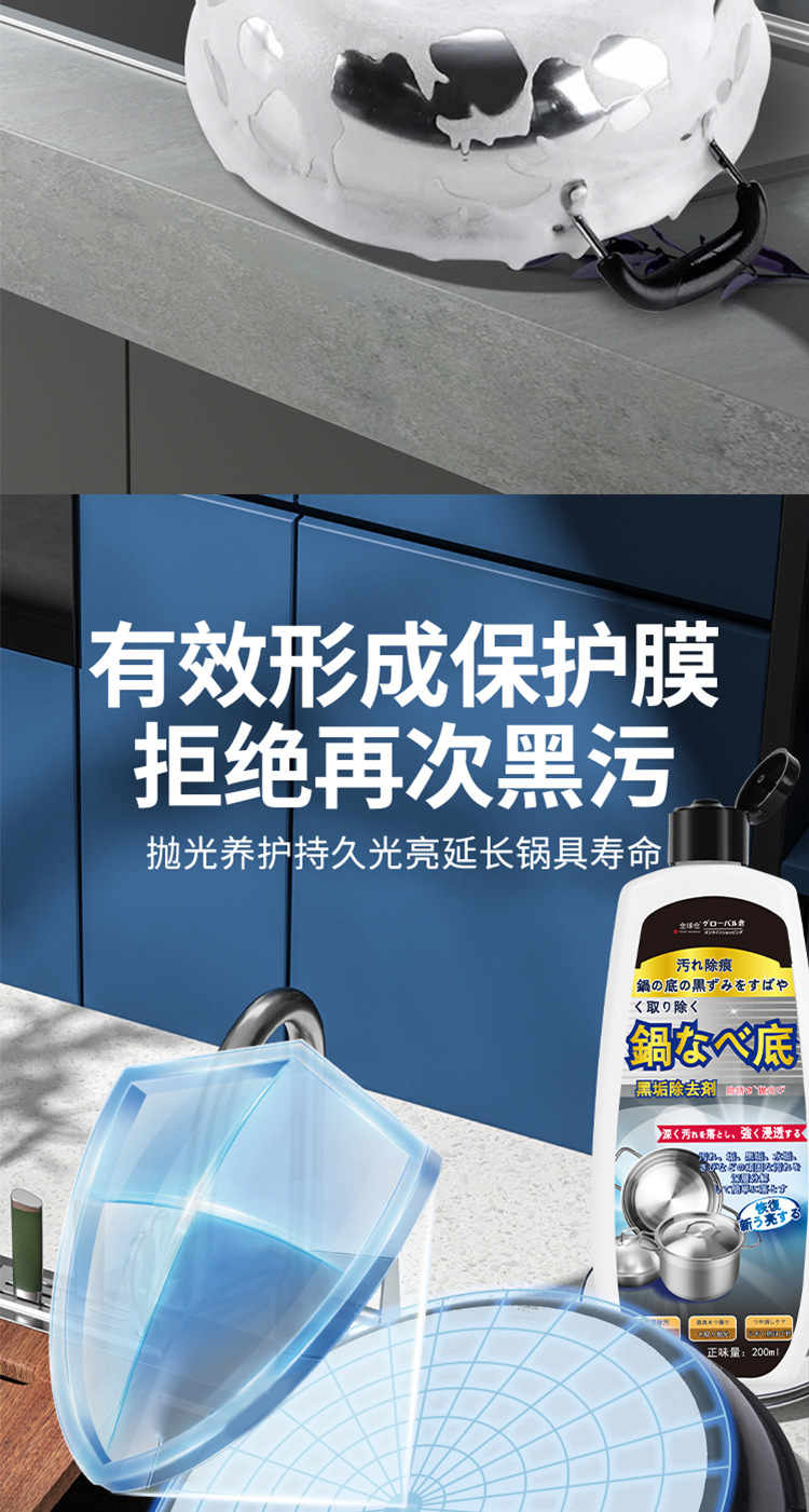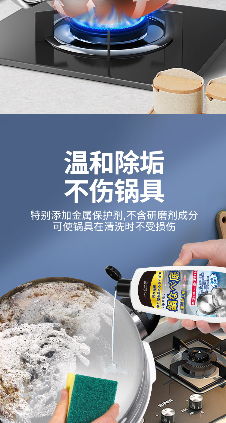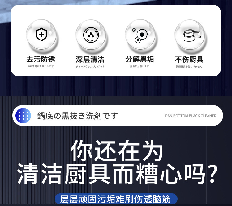 냄비 바닥 블랙 스케일 청소기 스테인레스 스틸 철 냄비 다기능 청소기 가정용 강력한 오염 제거 블랙 스케일 제거 유물