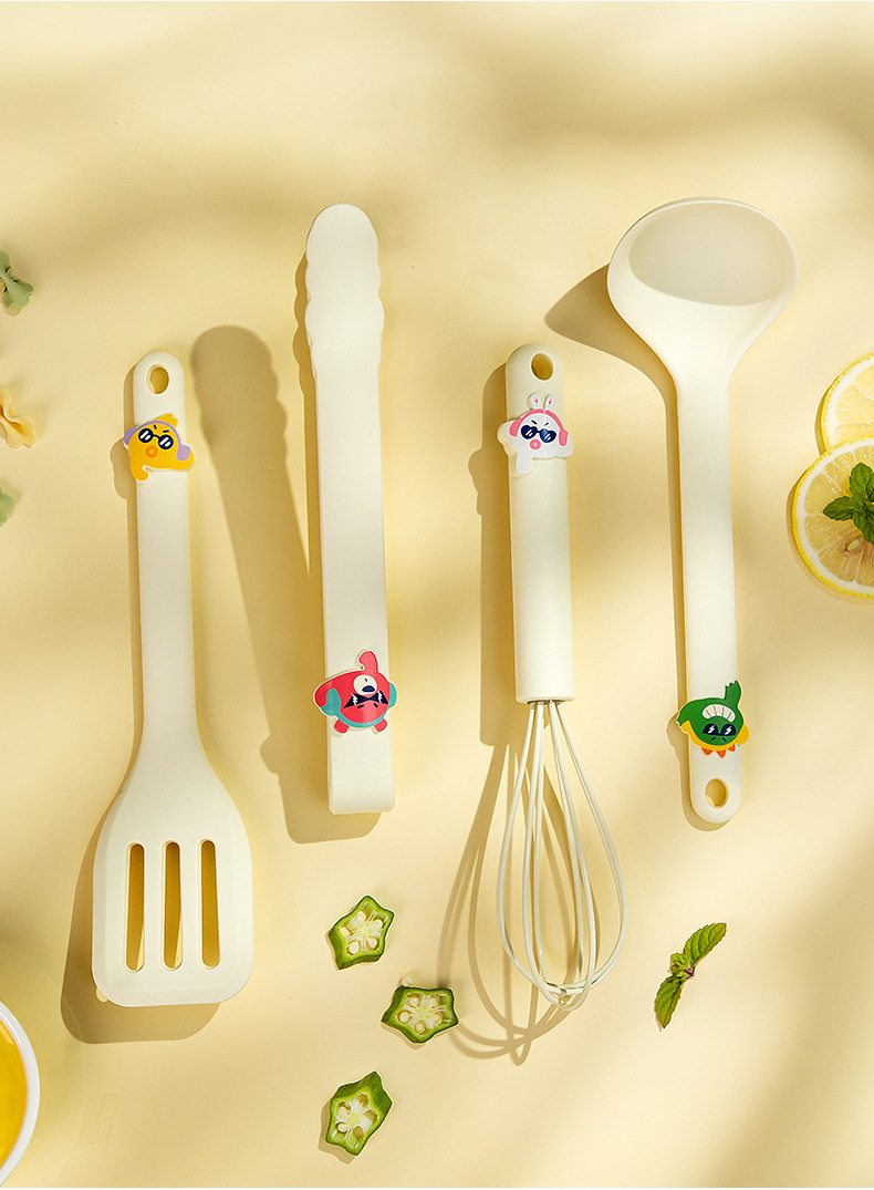 실리콘 요리 스푼 삽 세트 음식 클램프 계란 박터 고온 베이킹 도구 유아식 수프 스푼 작은 팬 삽