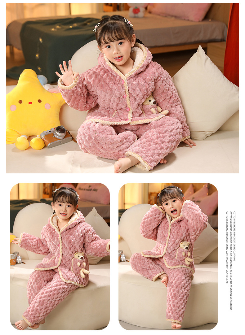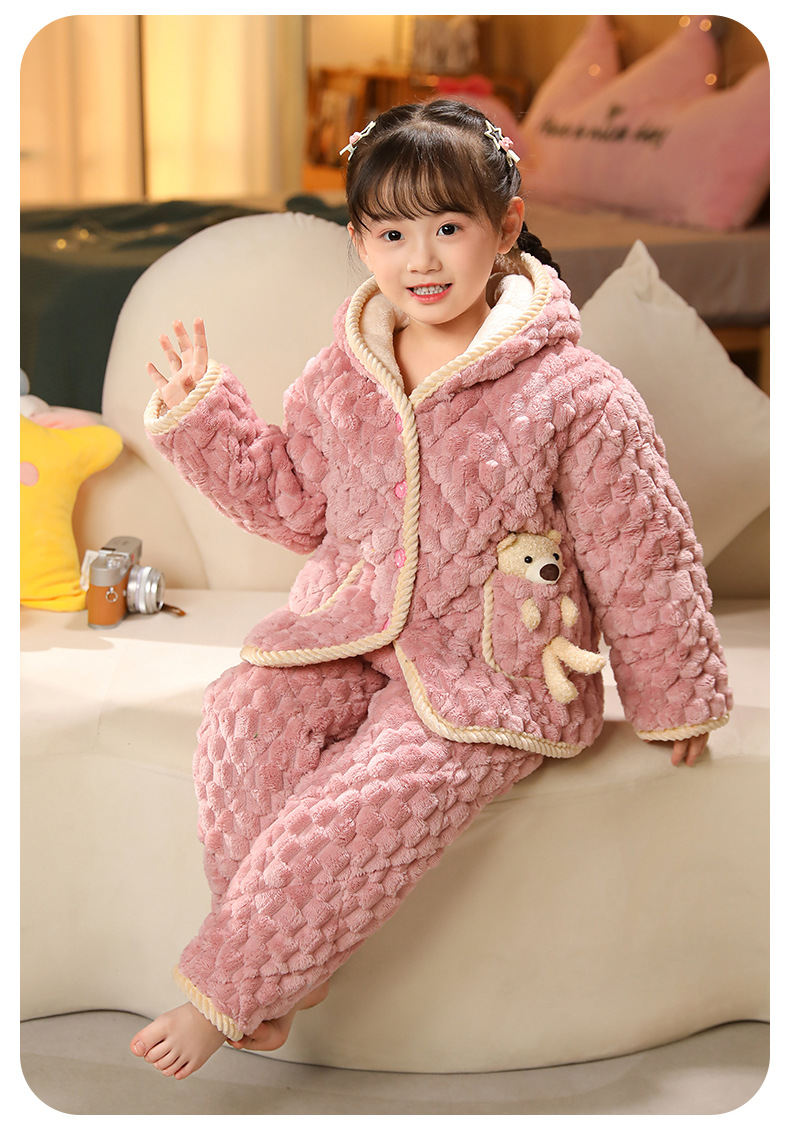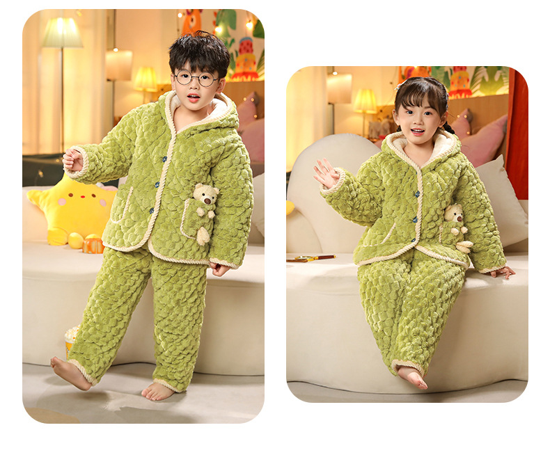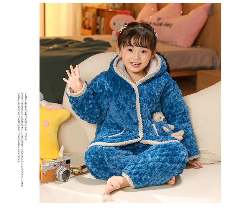 겨울 어린이 3 층 퀼트 파자마 소녀 기모 두꺼운 소년 여자 플란넬 홈웨어