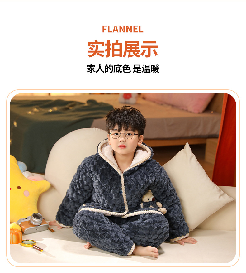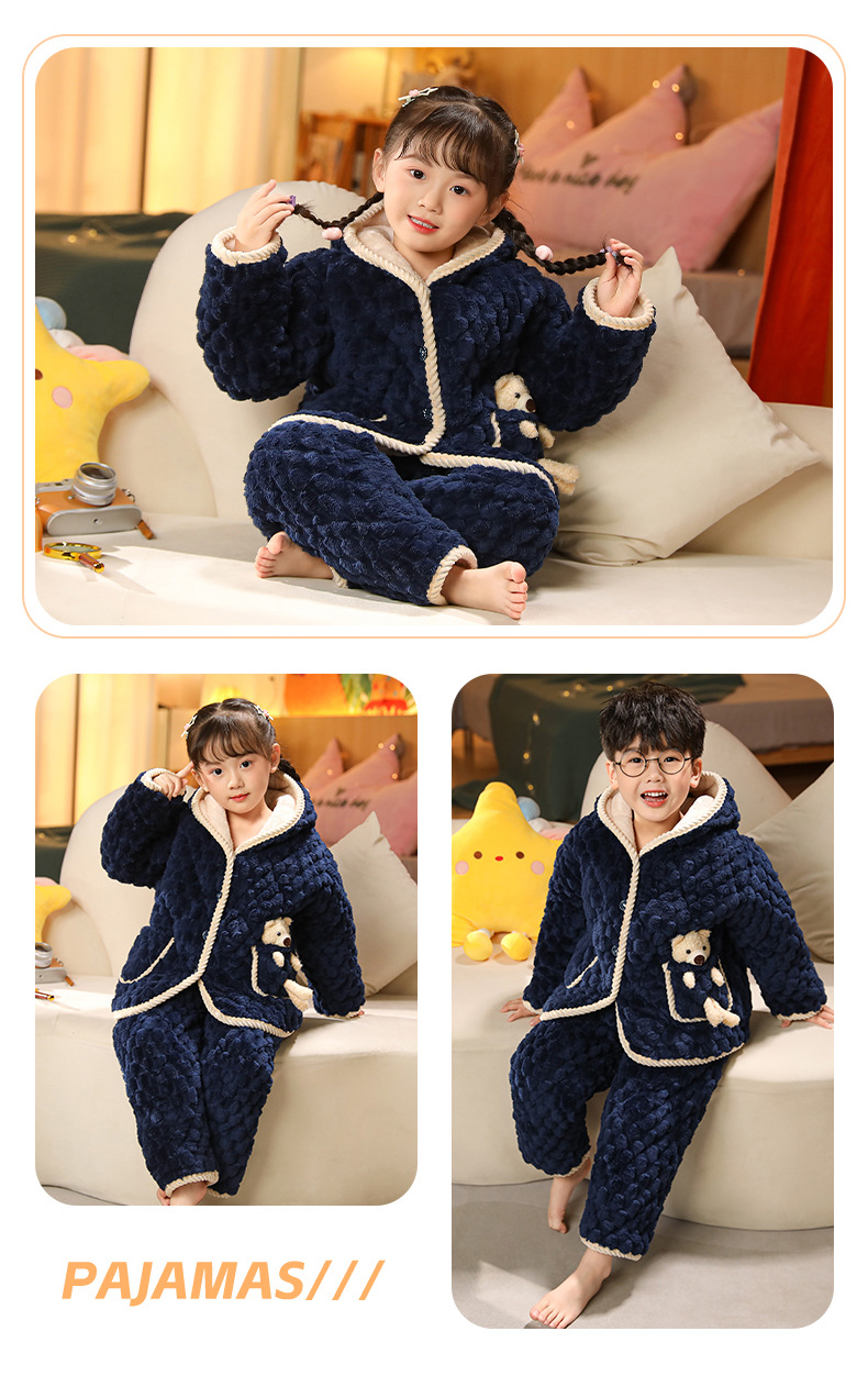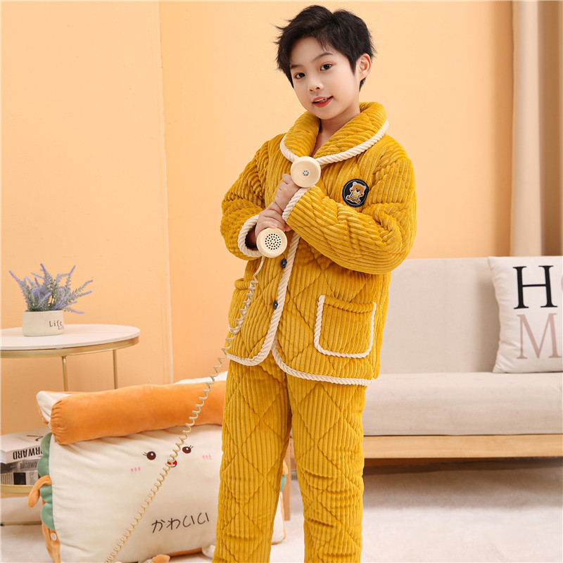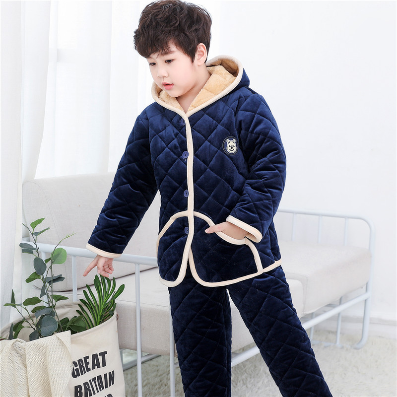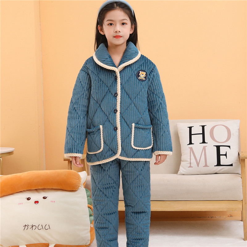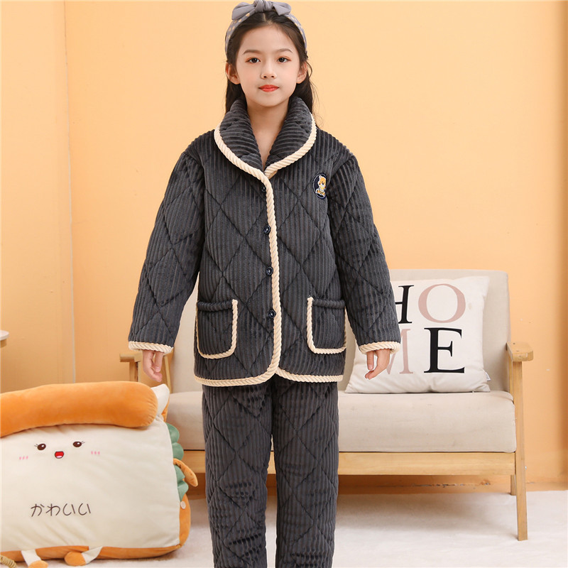 겨울 어린이 3 층 퀼트 파자마 소녀 기모 두꺼운 소년 여자 플란넬 홈웨어스토어 가기