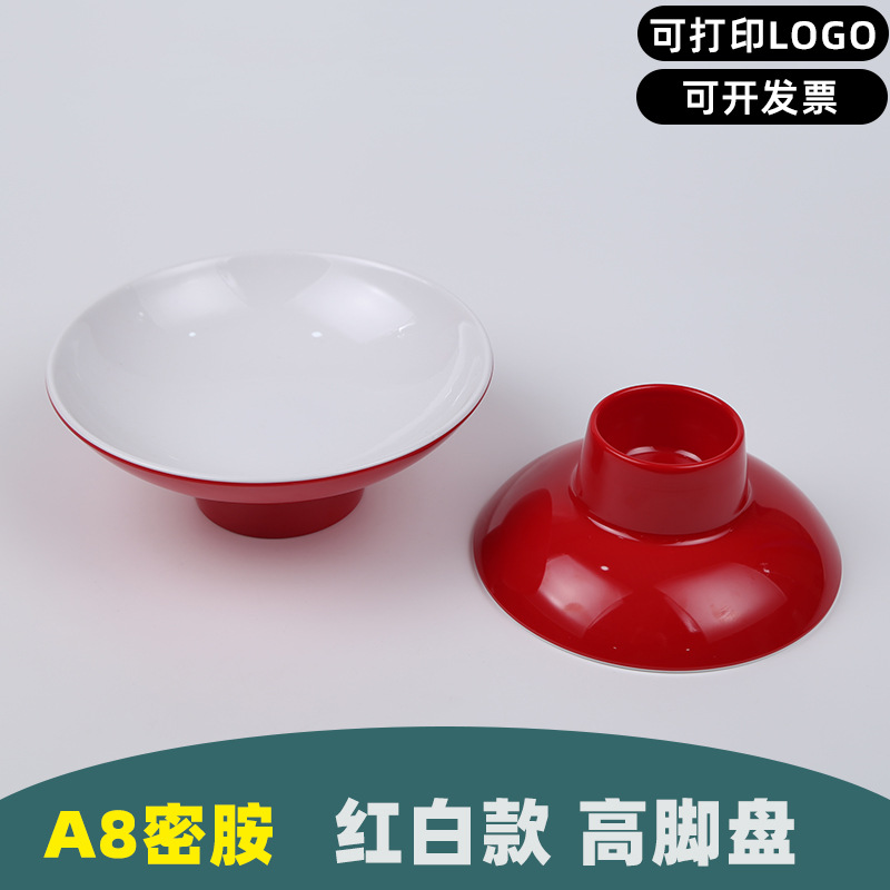 A8 빨간색과 흰색 멜라민 플레이트 둥근 잔 접시 냄비 호텔 모조 도자기 식기 요리 차가운 접시 스낵 플레이트 상업