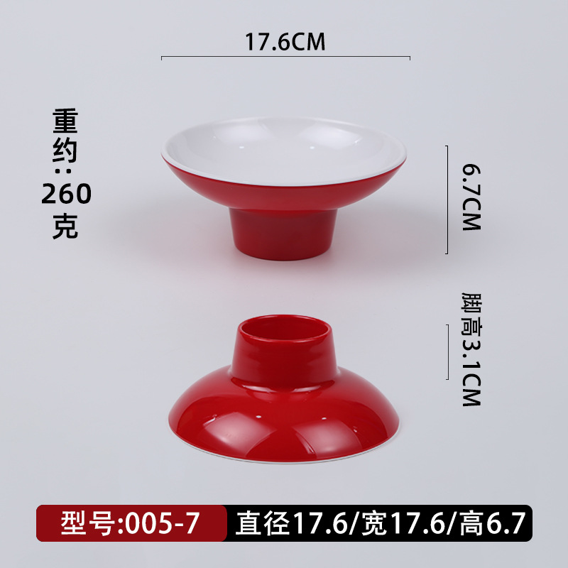 A8 빨간색과 흰색 멜라민 플레이트 둥근 잔 접시 냄비 호텔 모조 도자기 식기 요리 차가운 접시 스낵 플레이트 상업스토어 가기