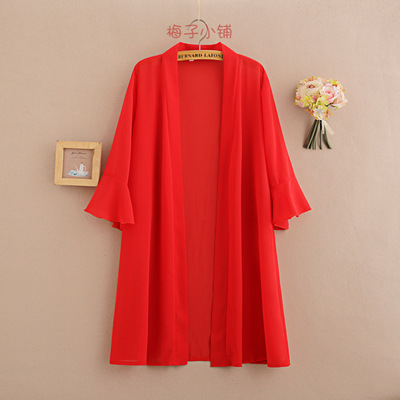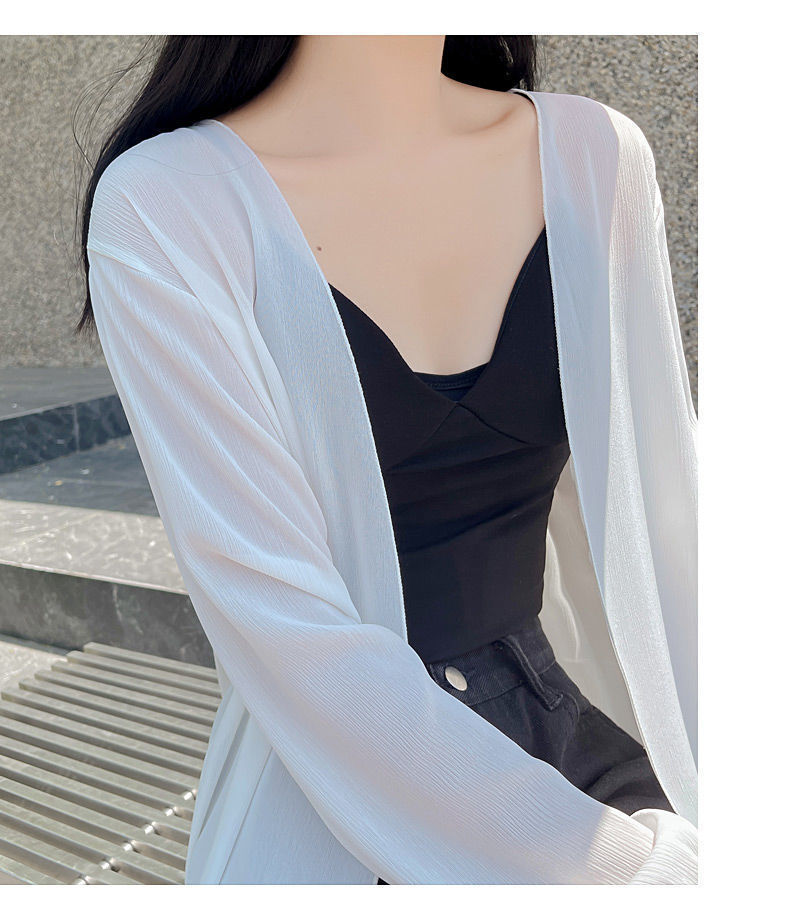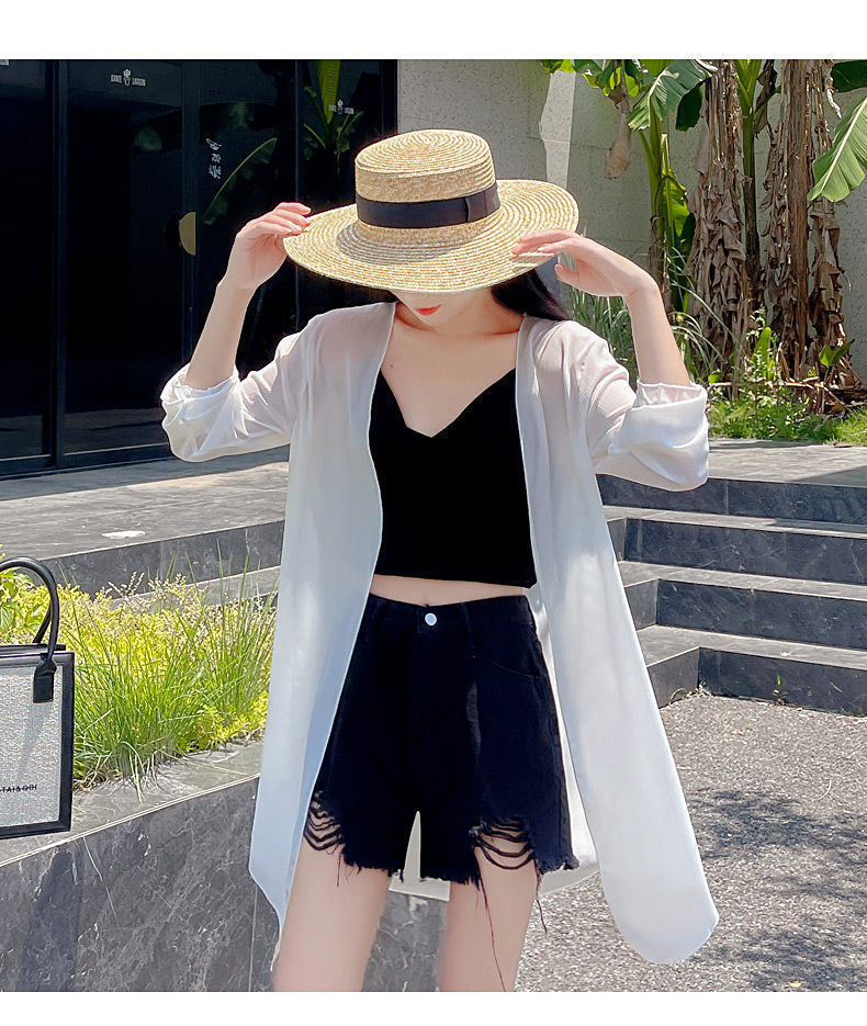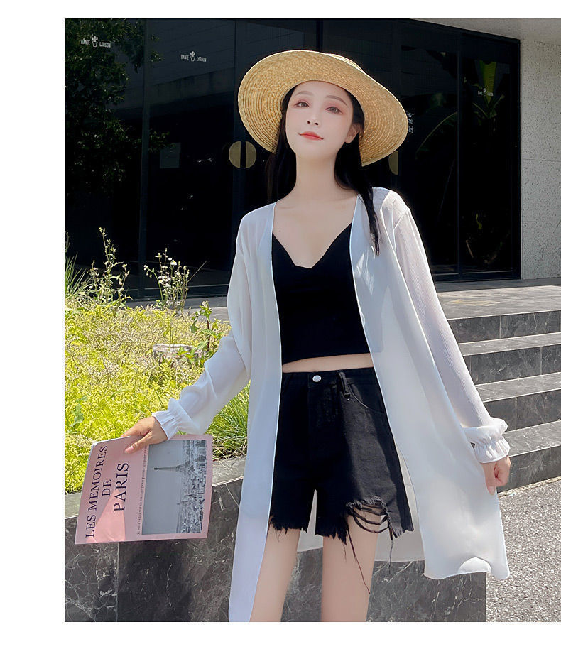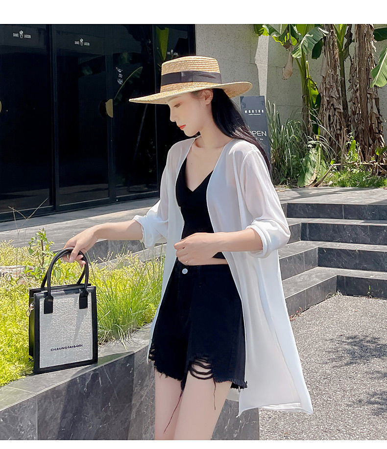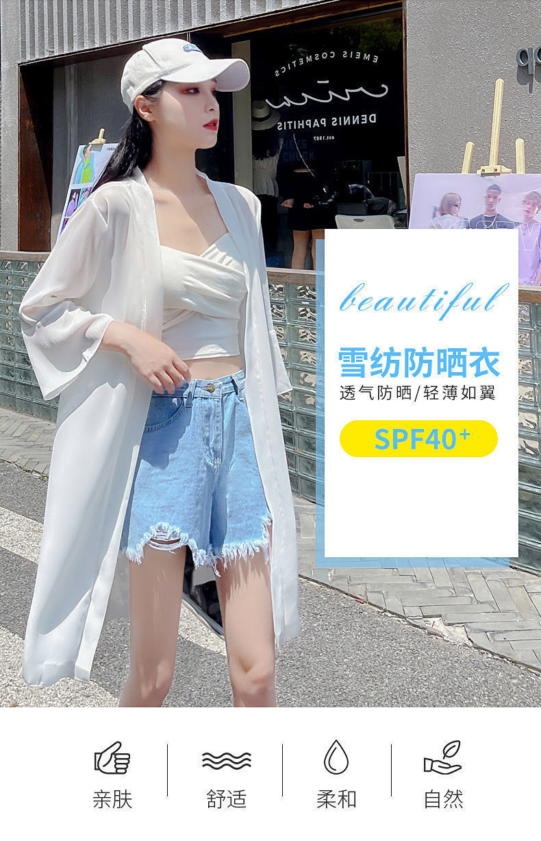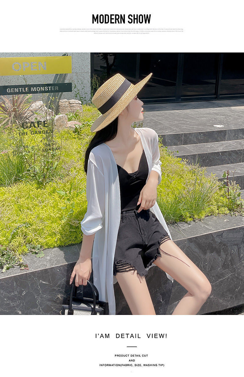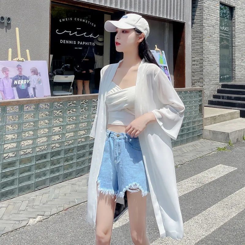스커트 쉬폰 코트 여성의 여름 다재다능한 작은 양복 조끼 얇은 카디건이있는 중간 길이의 목도리 여름 외부 스트랩스토어 가기