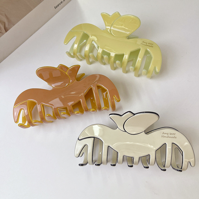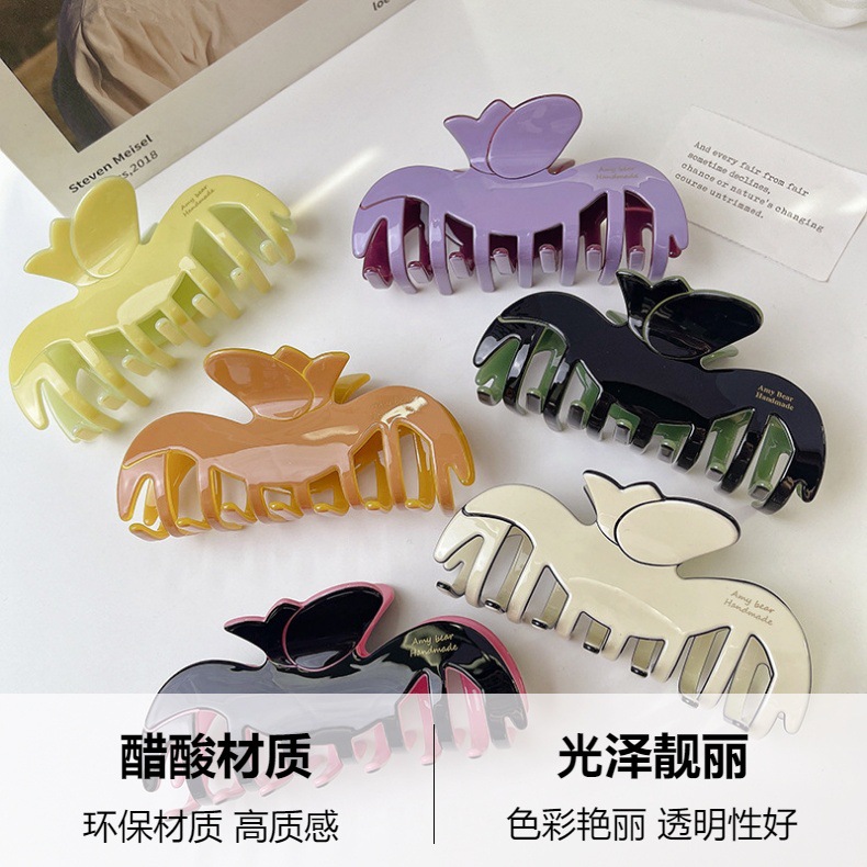 한국식 고급 튤립 컬러 매칭 꽃 클립 우아한 가벼운 럭셔리 아세테이트 헤어핀 updo 상어 클립 헤어 액세서리스토어 가기
