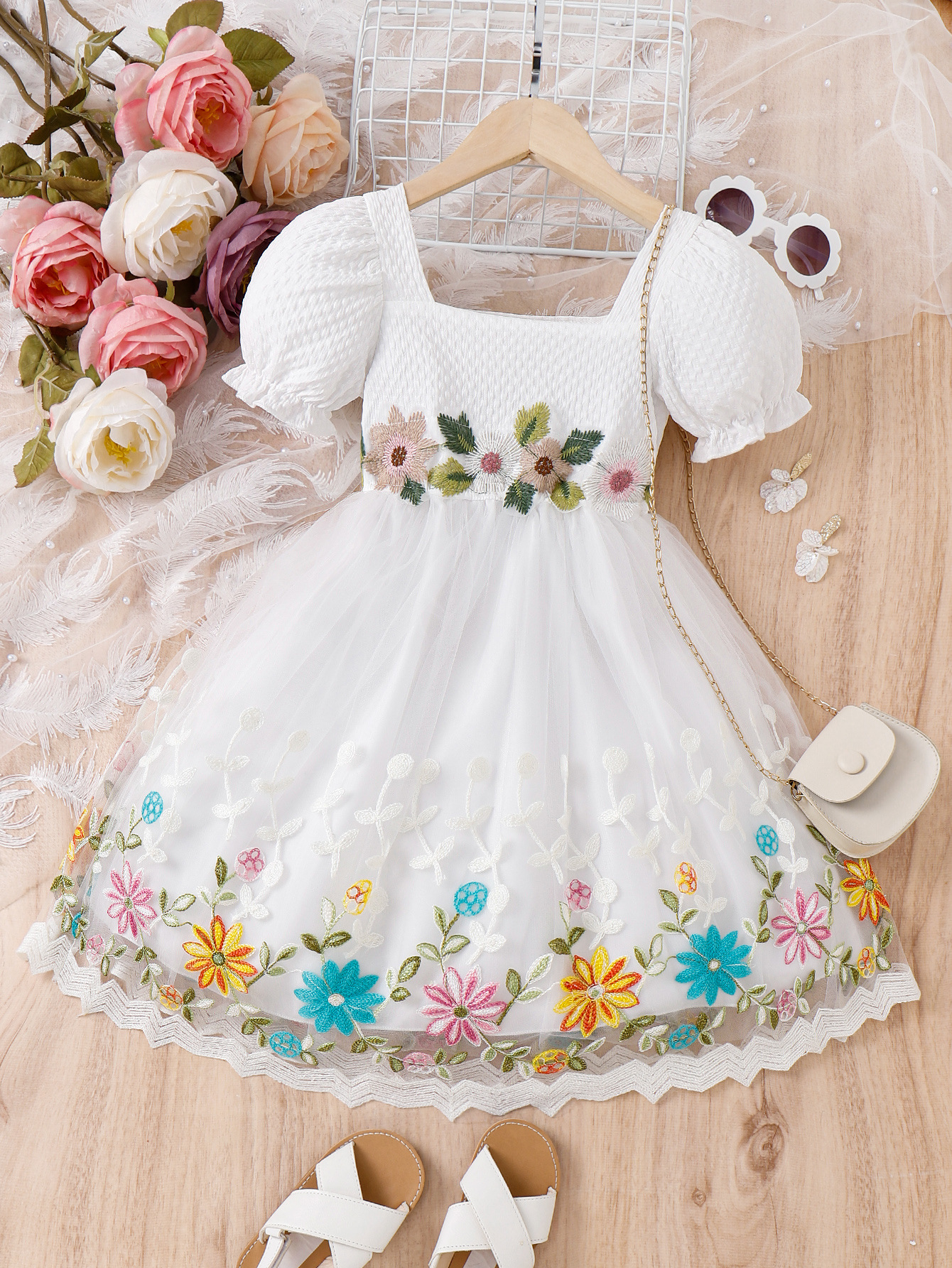 바옥신 아동복 국경을 넘나 드는 유럽과 미국의 여름 새로운 도착 원피스 중소형 소녀 버블 슬리브 자수 스커트 공주 원피스스토어 가기