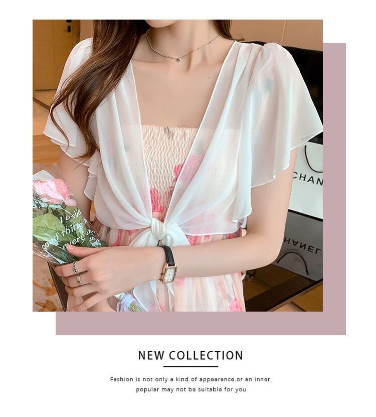 여름 쉬폰 숄 여성 서스펜더 스커트 케이프 작은 양복 조끼 겉옷 선 스크린 카디건 요정 블라우스 얇은 코트