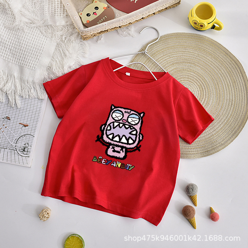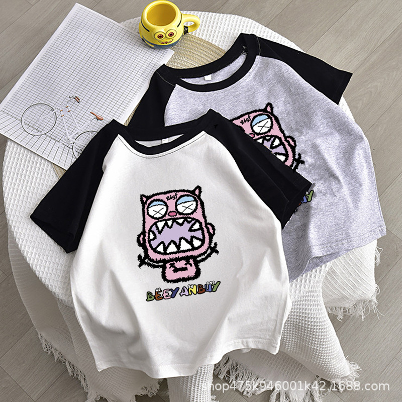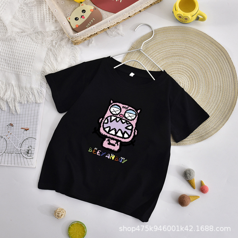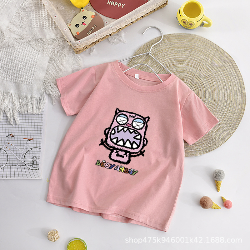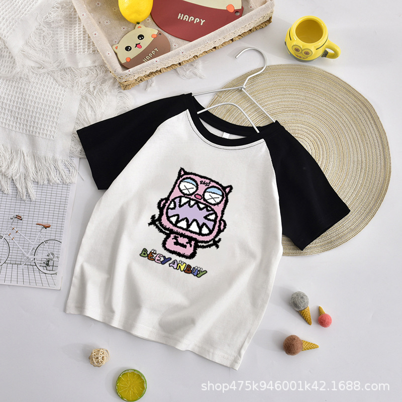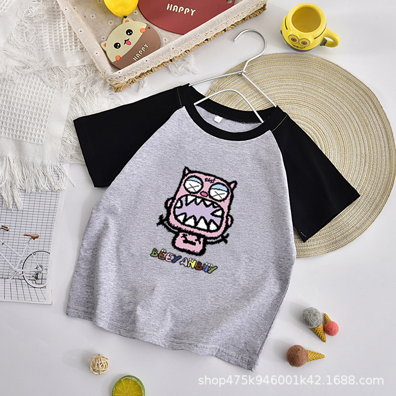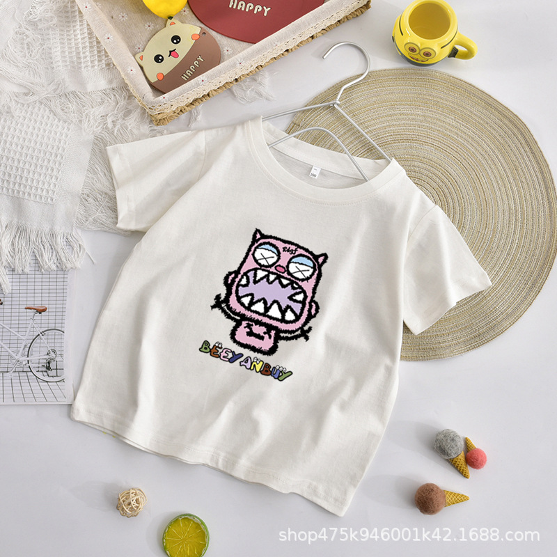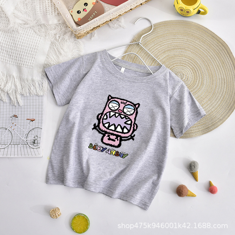 도매 국경 소년 소녀 얇은면 반팔 셔츠 여름 어린이 서양식 만화 둥근 목 반팔 티셔츠 느슨한스토어 가기