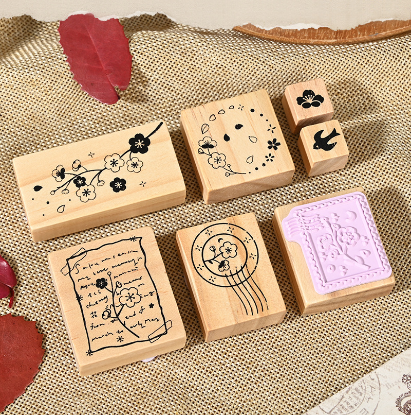 나무 수제 다이어리 스탬프 재고 있음, 수제 DIY 재료, 장식용 스탬프, 예술적 나무 귀여운 꽃 스탬프 맞춤 제작스토어 가기